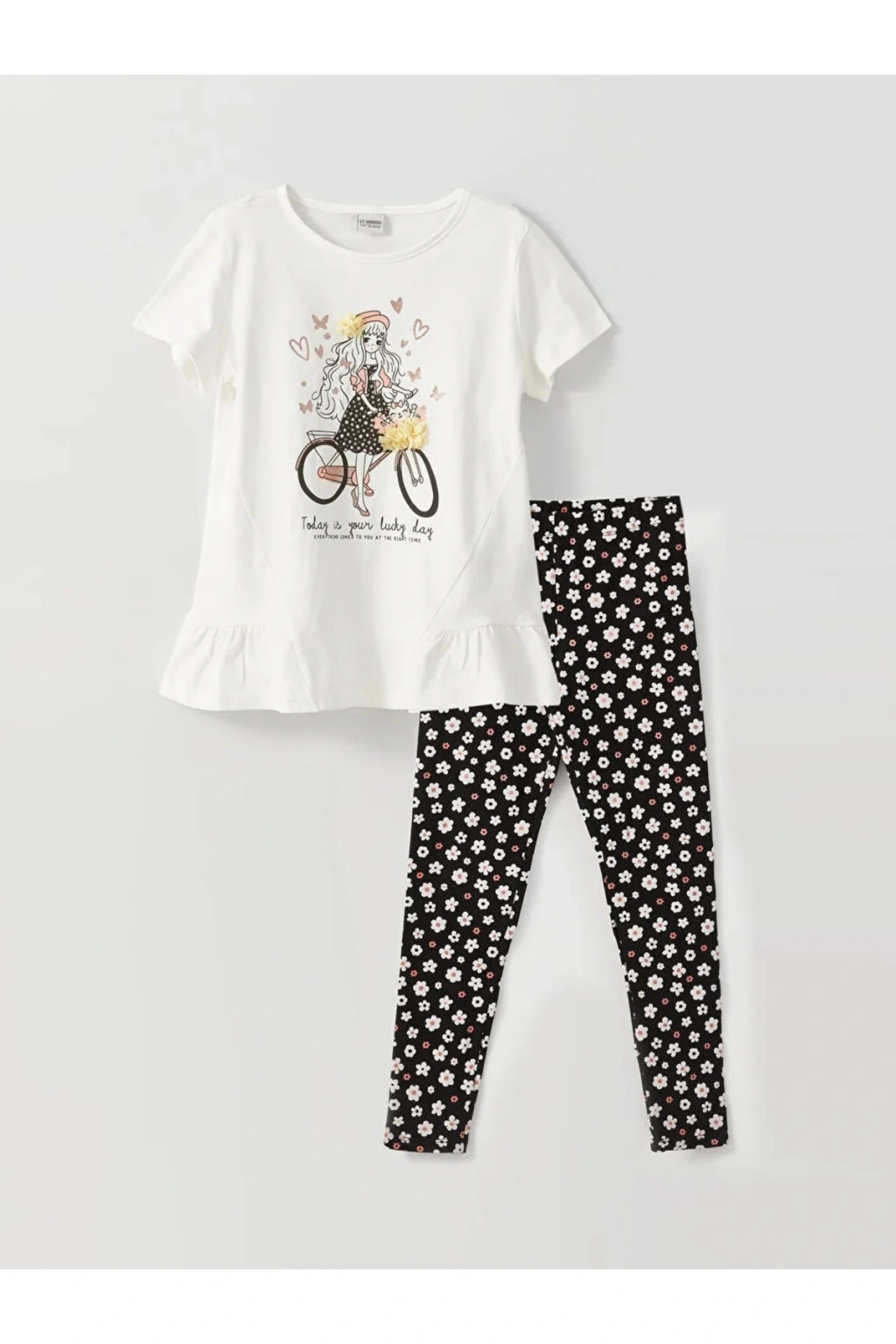 Ürün Açıklaması Bisiklet yaka, kısa kollu tişört ile beli lastikli tayttan oluşan 2’li takım baskı ve desen detayların uyumunu yansıtır. Tişörtün etek ucunda kullanılan dikiş detaylar tasarımı hareketlendirir. Pamuk dokuya sahip tasarımlar konforlu şıklık sunar. ; Ürün İçeriği ve Özellikleri Ürün İçeriği: Ana Kumaş Bluz: %100 Pamuk Ana Kumaş Tayt: %95 Pamuk %5 ELASTAN Ürün Özellikleri: Ürün Tip: Takım Marka: LCW Kids Cinsiyet: Kız Çocuk Desen: Baskılı / Desenli Yaka: Bisiklet Yaka Kalıp: Standart Kalınlık: Orta Kalınlık Kol Boyu: Kısa Kol Kumaş: Penye