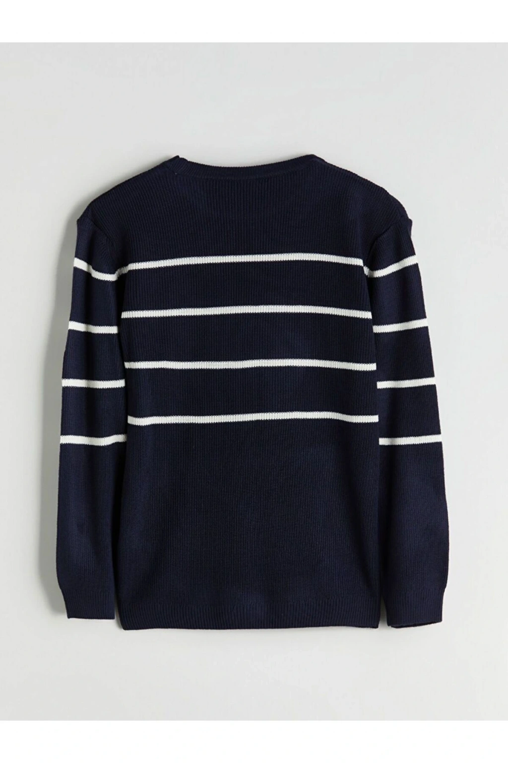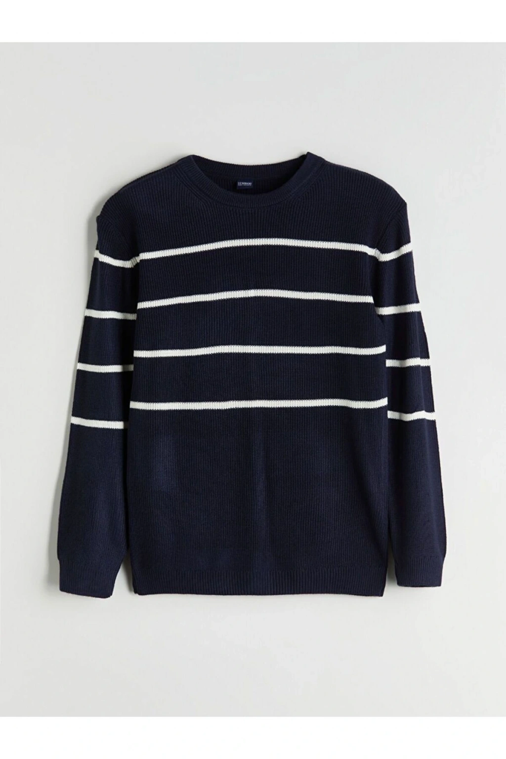Ürün AçıklamasıBisiklet yaka ve uzun kollu erkek kazak, ince triko kumaştan üretilmiştir.; Çizgili desene sahiptir.; Ürün İçeriği ve ÖzellikleriÜrün Tipi: KazakCinsiyet: Erkek ÇocukKalıp: Standart & RegularKumaş: TrikoDesen: ÇizgiliYaka: Bisiklet YakaKalınlık: İnceKol Boyu: Uzun Kollu