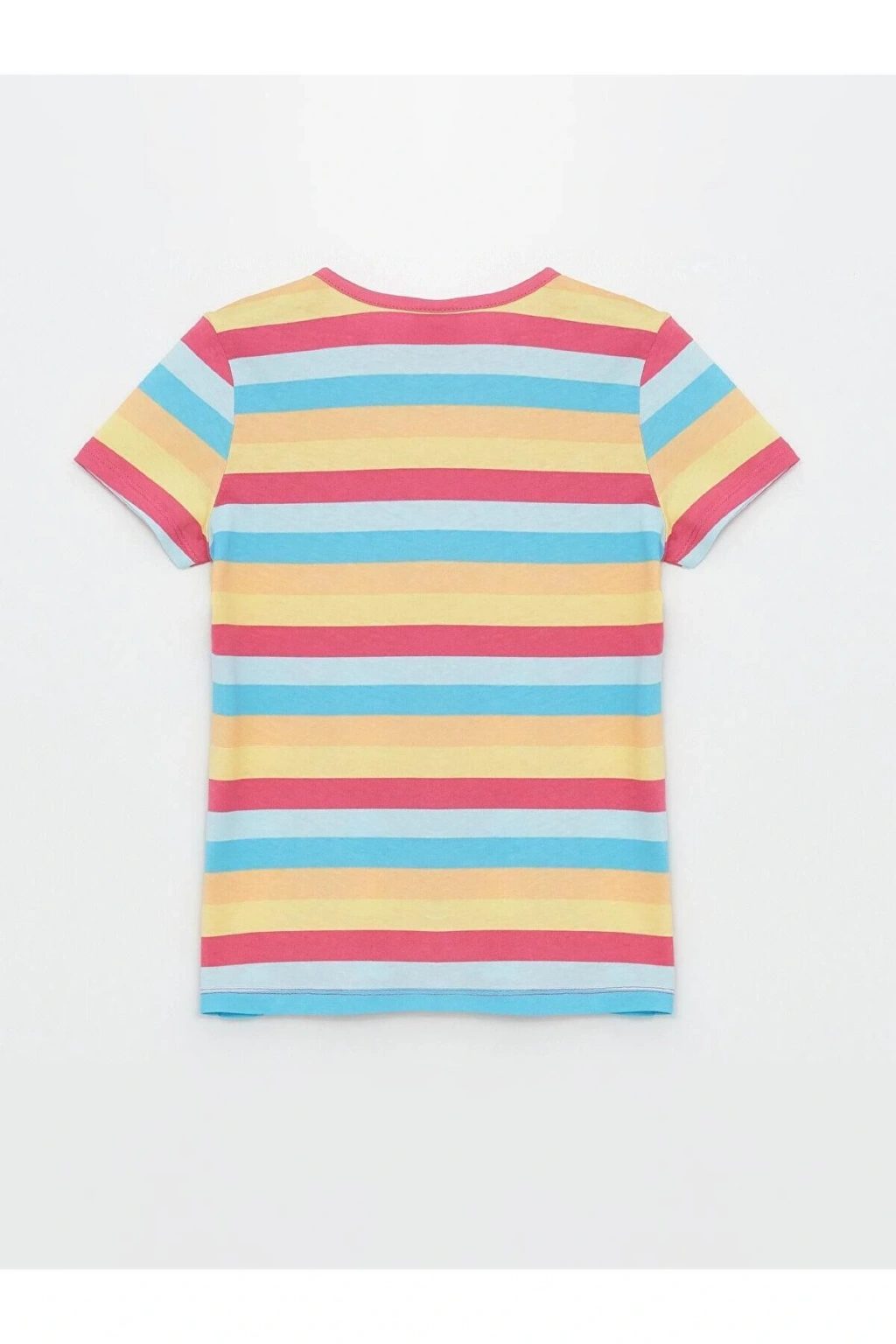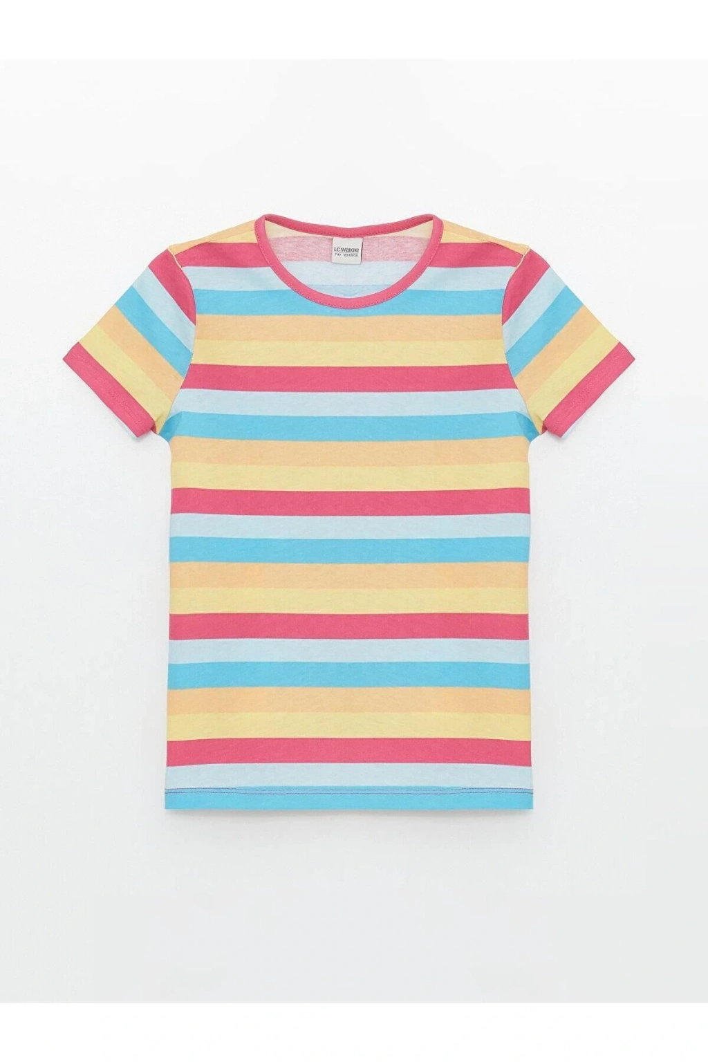 LCW Kids Bisiklet Yaka Çizgili Kısa Kollu Kız Çocuk Tişört