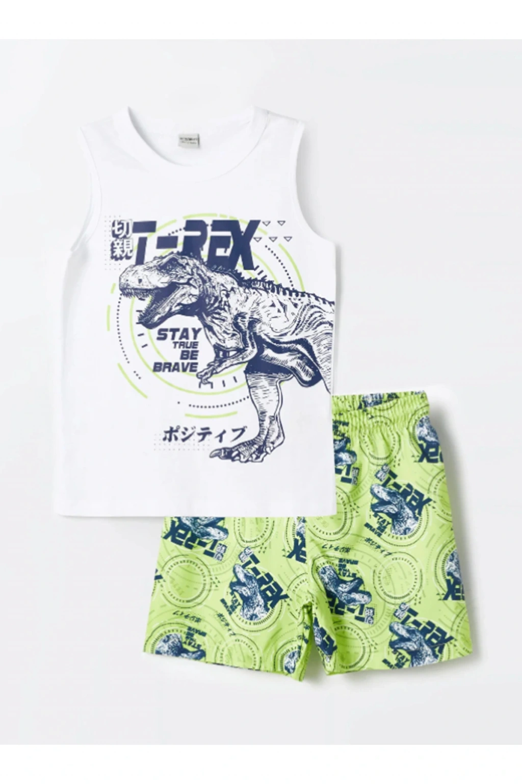 Ürün Açıklaması Erkek çocuk yüzme takım, atlet ve deniz şortu kombinasyonuyla şık bir görünüm sunuyor. Baskılı tasarımıyla dikkat çeken takımın beli lastikli ve ayarlanabilir ipli olması rahatlık ve stil arayan çocuklar için ideal bir seçenek. ; Ürün İçeriği ve Özellikleri Ürün İçeriği: Ana Kumaş Atlet: %100 Pamuk Ana Kumaş Yüzme Şortu: %100 Polyester Astar Yüzme Şortu: %100 Polyester Ürün Özellikleri: Ürün Tip: Yüzme Takım Desen: Baskılı Malzeme: %100 Pamuk Cinsiyet: Erkek Çocuk Marka: LCW Kids Kol Boyu: Kolsuz Kalıp: Standart