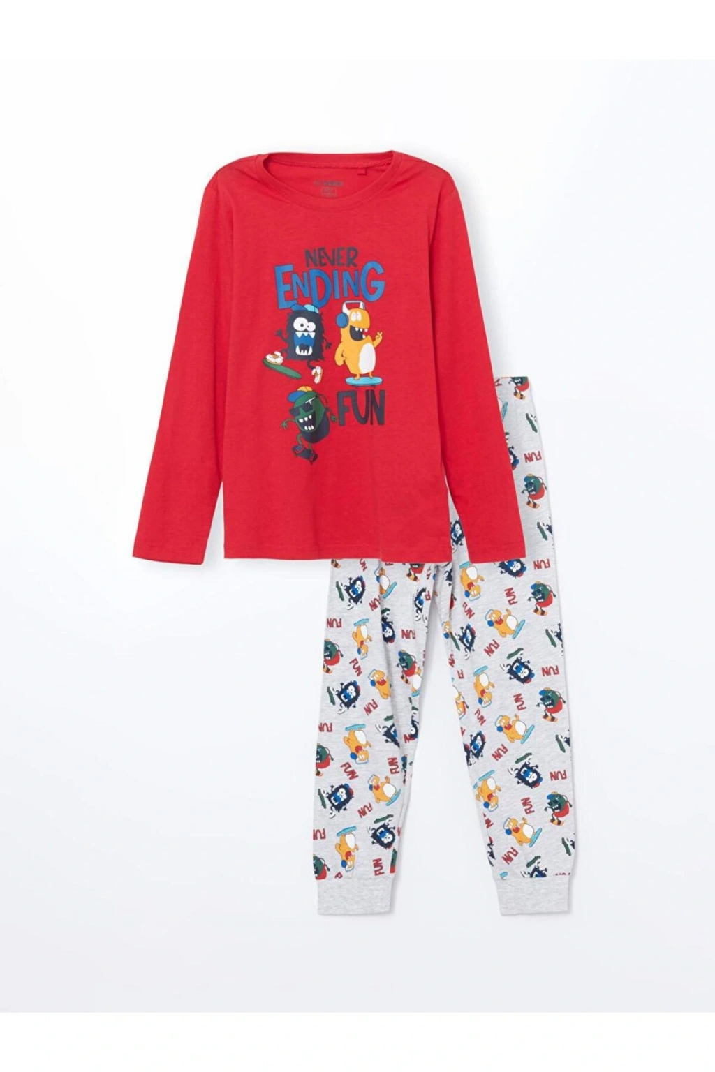 - Uzun kollu tasarımı ile çocukların rahat hareket etmesini sağlar.; - Belirtilmemiş kumaş tipi, dayanıklılığı artırırken konforlu bir uyku deneyimi sunar.; - Regular kalıp sayesinde vücuda tam oturur ve rahat bir kullanım sağlar.; - Çocuklar için özel olarak tasarlanmış yaş grubuna uygun beden seçenekleri mevcuttur.; - Lastikli paça tasarımı, pijamanın sabit kalmasına yardımcı olarak gece boyunca rahatlık sunar.; - Baskılı deseniyle şık ve eğlenceli bir görünüm kazandırırken, bisiklet yaka detayı modern bir dokunuş katmaktadır.; - Pamuklu materyali sayesinde cildi tahriş etmeden yumuşak bir his verir.; - Uzun paça boyu ile bacakları sıcak tutarken, 5-6 yaş arası çocuklar için idealdir.; - Canlı kırmızı rengiyle enerjik ve dikkat çekici bir stil oluşturur.; - Parça detaylarına sahip bu pijama takımı, farklı parçalarla kombin yapma imkanı tanır.