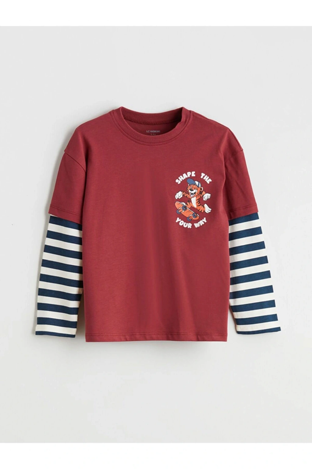 Ürün AçıklamasıBisiklet yakalı erkek çocuk tişört, katmanlı görünümlü uzun kollara sahiptir.; Kolları çizgili desenli, önü baskılıdır.; Ürün İçeriği ve ÖzellikleriÜrün Tipi: TişörtCinsiyet: Erkek ÇocukKalıp: Loose & BolYaka: Bisiklet YakaDesen: BaskılıKumaş: PenyeKalınlık: Orta KalınlıkKol Boyu: Uzun Kollu