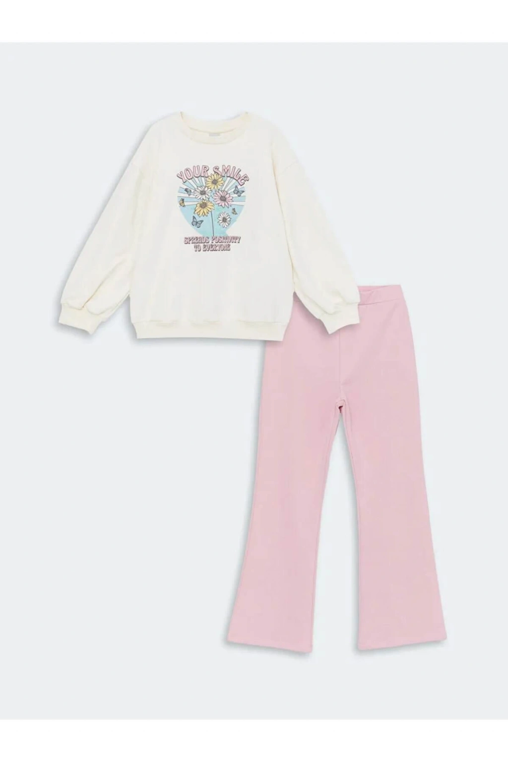 Sweatshirt ve eşofman altından oluşan 2'li takım yumuşak dokulu 3 iplik kumaştan üretimiştir. Baskılı tasarımıyla dikkat çeker. Şık görünümün yanı sıra rahatlık sunan takım, hareket özgürlüğü ve konfor sağlar.