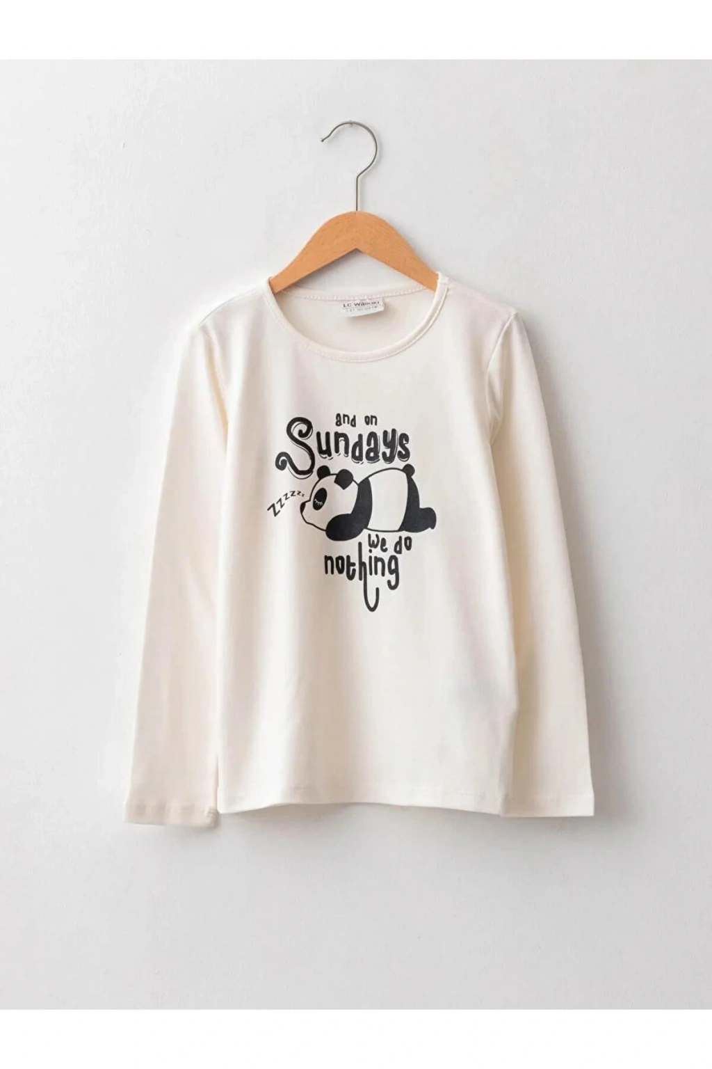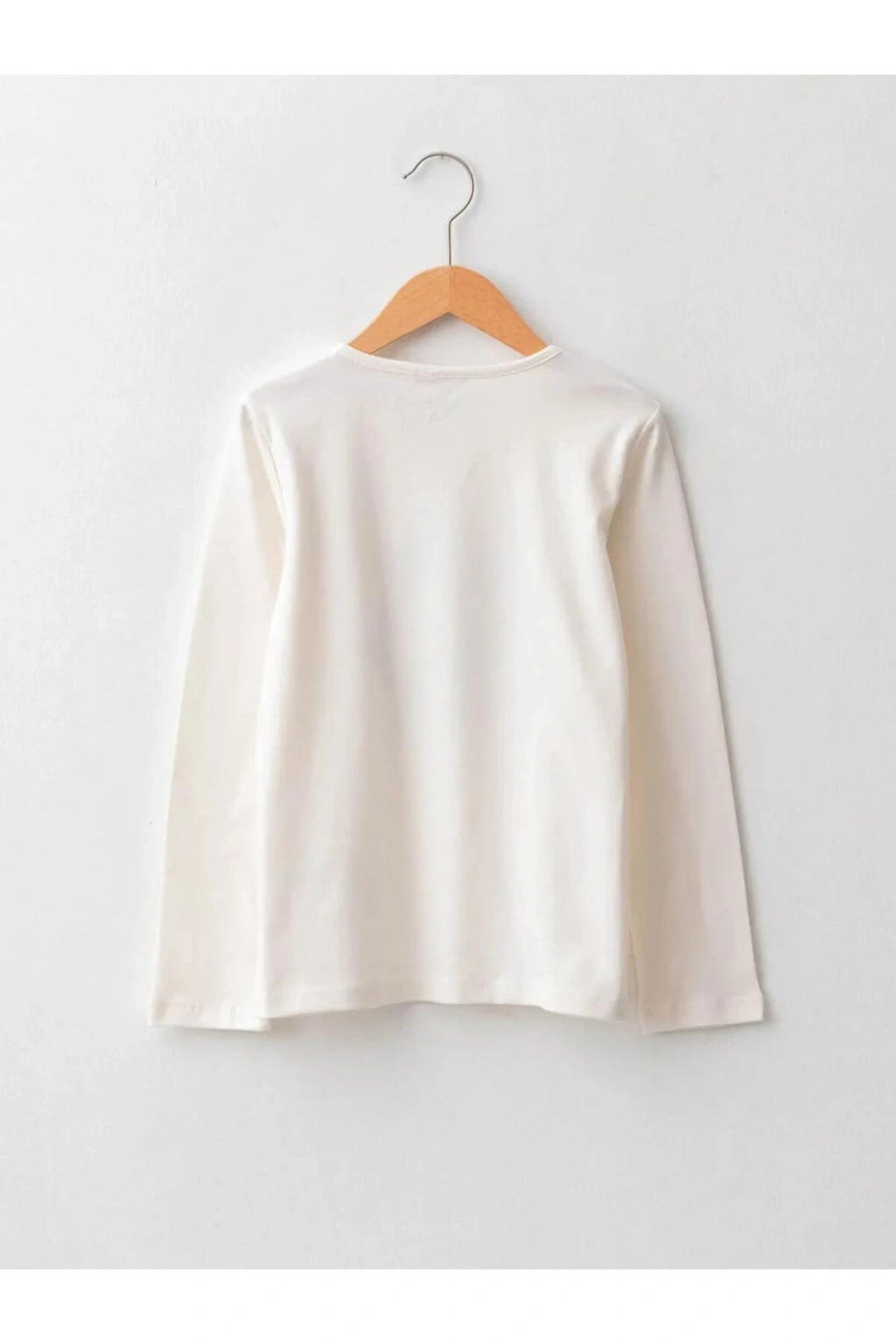 LCW Kids Ekru Bisiklet Yaka Baskılı Uzun Kollu Pamuklu Kız Çocuk Tişört