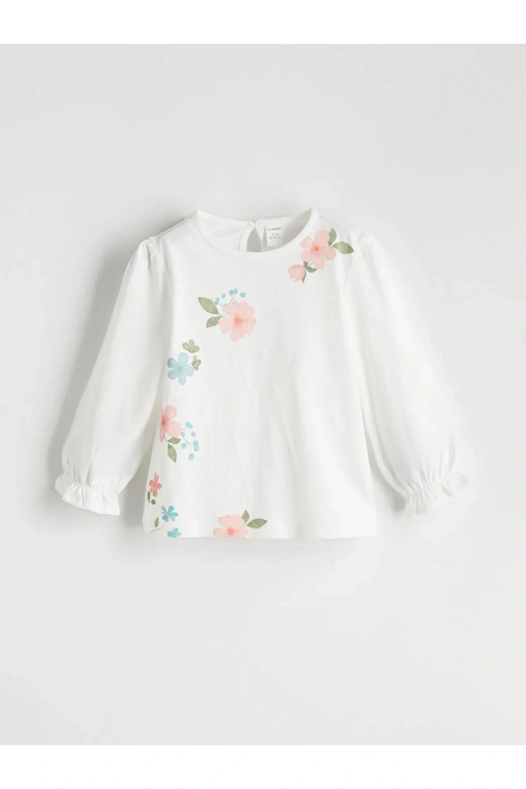Pamuklu penye kumaşıyla yumuşak ve hafif bir kullanım sunan bluz, çiçek desenleriyle neşeli bir stil oluşturur. Arka yaka kısmındaki düğme detayı giyip çıkarmayı kolaylaştırır.