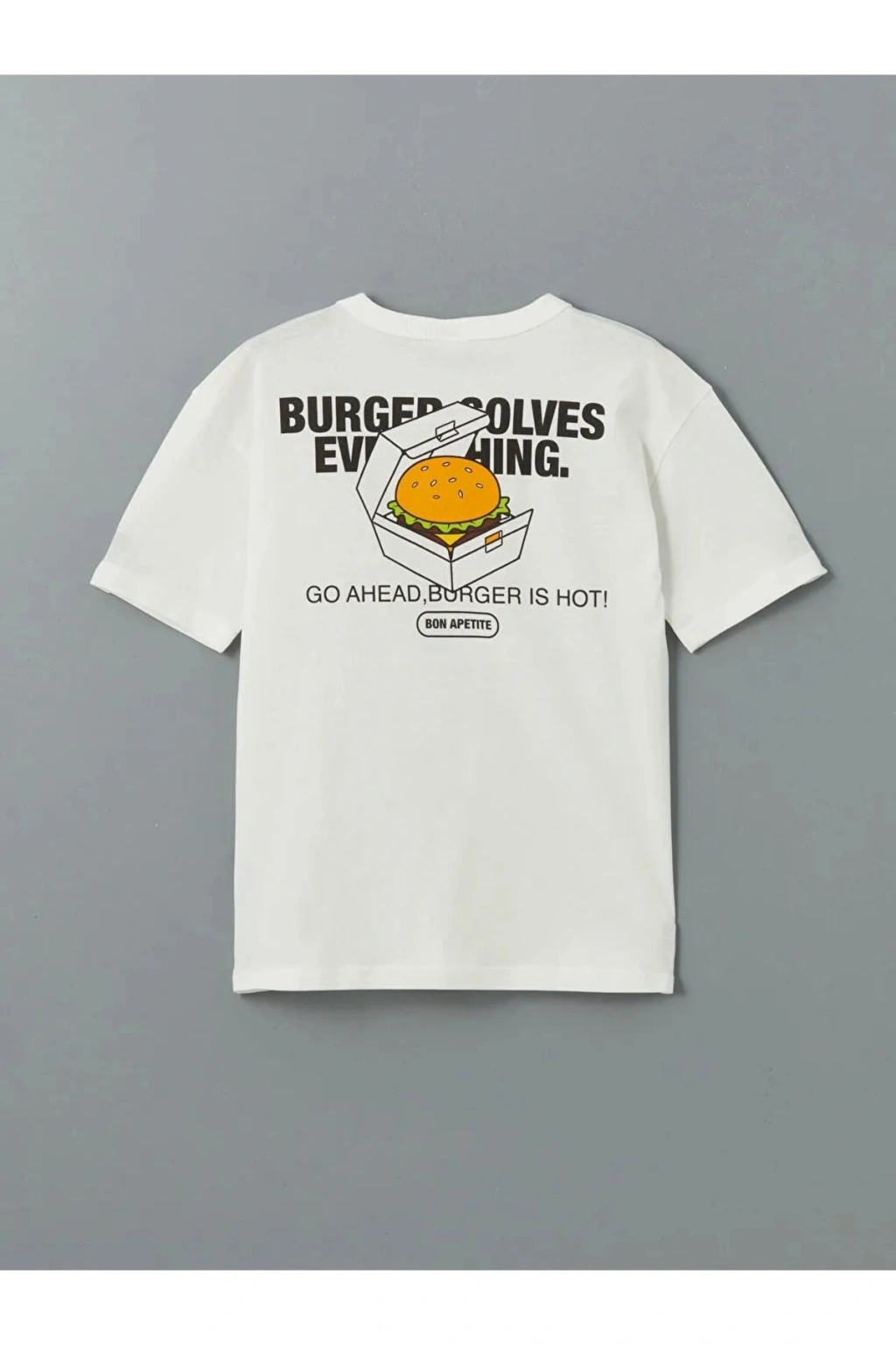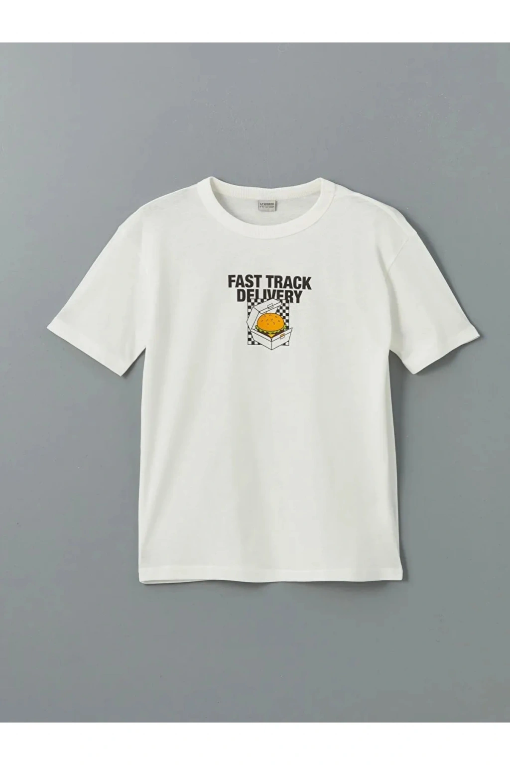 Bisiklet yaka ve kısa kollu erkek çocuk tişört, %100 pamuklu penye kumaştan üretilmiştir. Standart kalıplı ve önü baskılıdır.