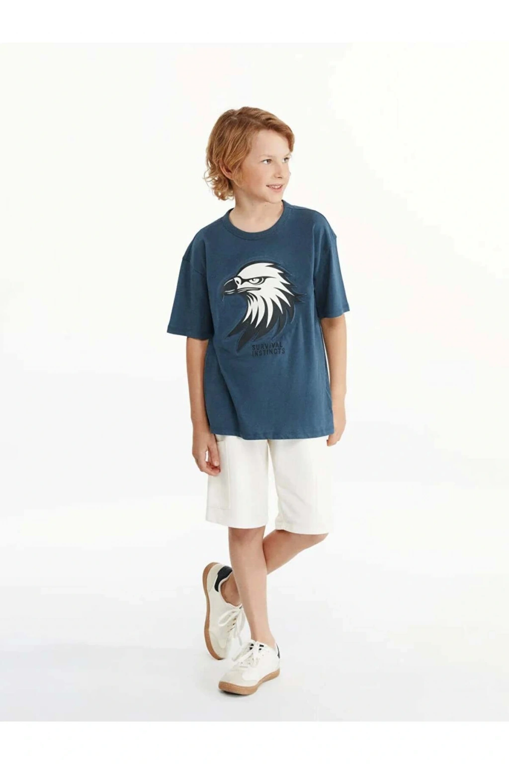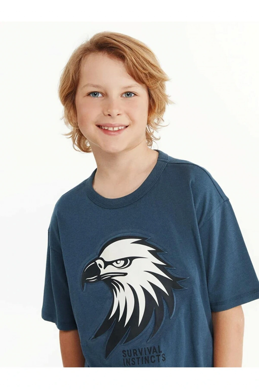 Erkek çocuklarınız için rahat ve şık bir seçenek! Bisiklet yaka, ince penye kumaştan üretilen bu tişört, kabartmalı baskılı tasarımıyla dikkat çekiyor. Günlük kullanım için ideal.