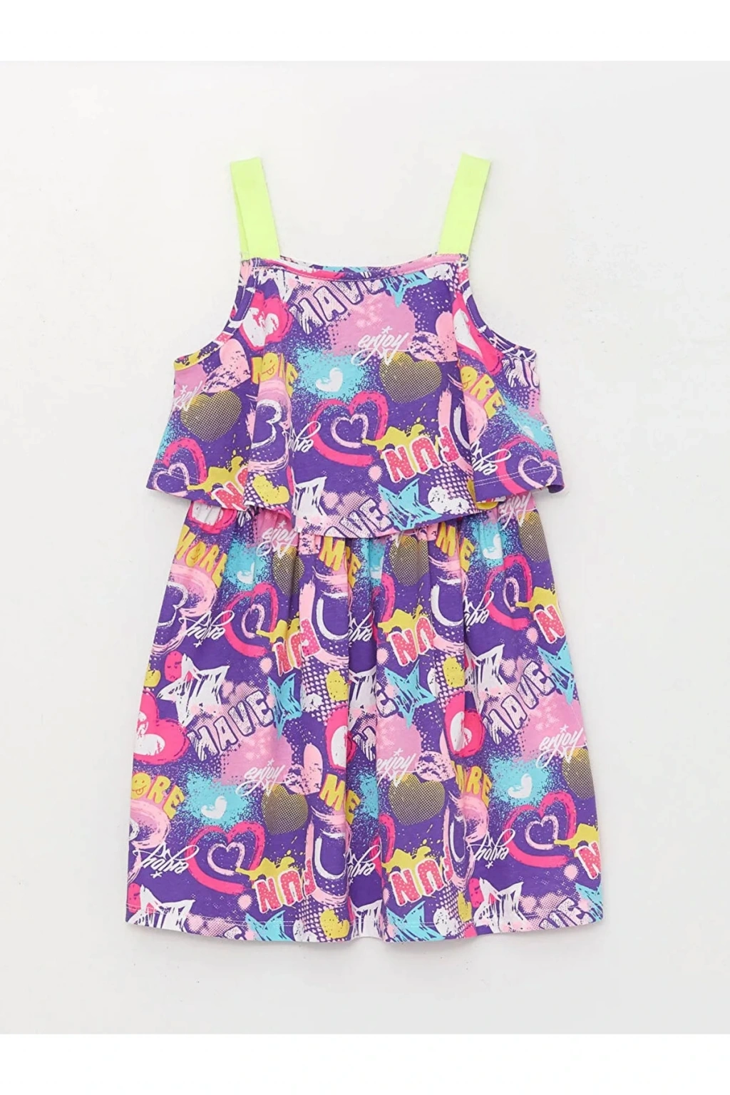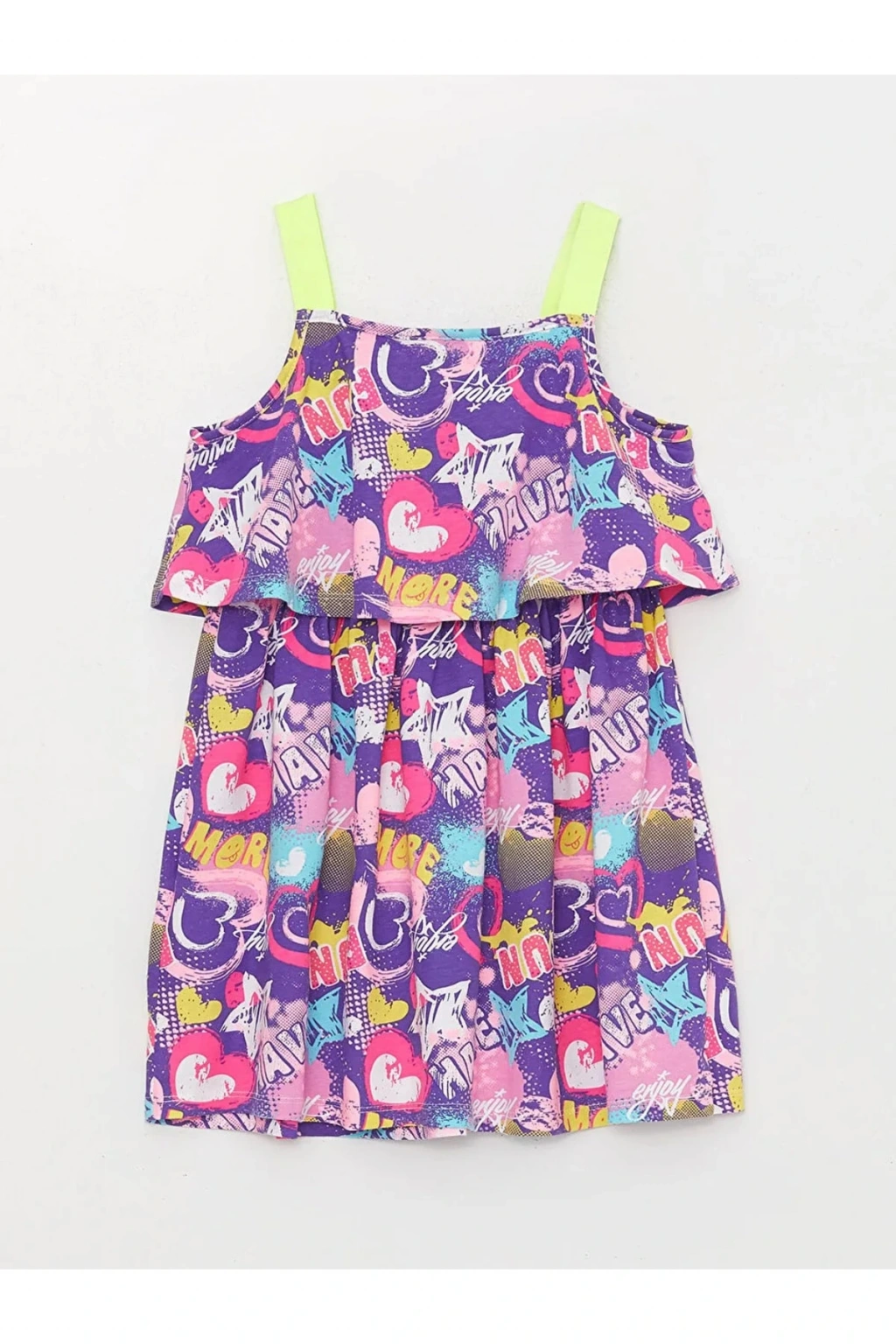 Ürün Açıklaması %100 pamuklu penye kumaştan ; Ürün İçeriği ve Özellikleri Ürün İçeriği: Ana Kumaş: %100 Pamuk Ürün Özellikleri: Cinsiyet: Kız Çocuk Desen: Baskılı / Desenli Kol Boyu: Askılı / Kolsuz Yaka: Kare Yaka Kalıp: Dar Marka: LCW Kids Ürün Tip: Elbise Kalınlık: İnce Kumaş: Penye