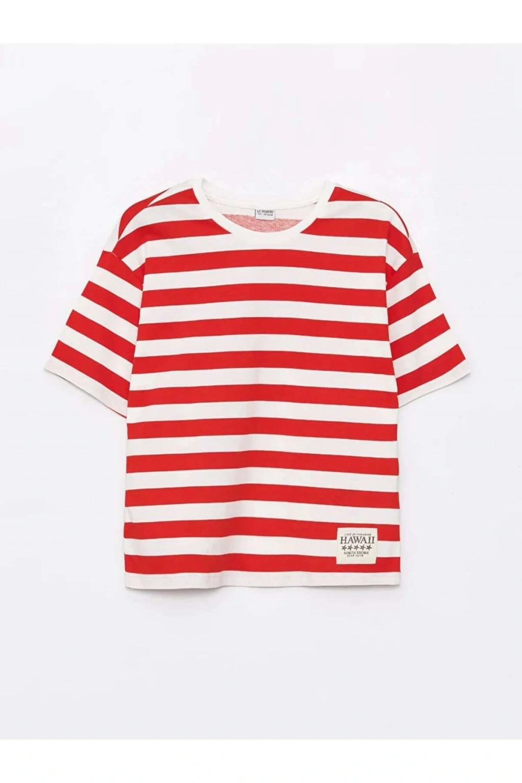 Çizgili desenleri ve bisiklet yaka tasarımıyla öne çıkan kız çocuk tişört, pamuklu penye kumaşı ile rahat bir kullanım sunar. Hem şık hem de konforlu, günlük giyim için ideal bir seçenektir.