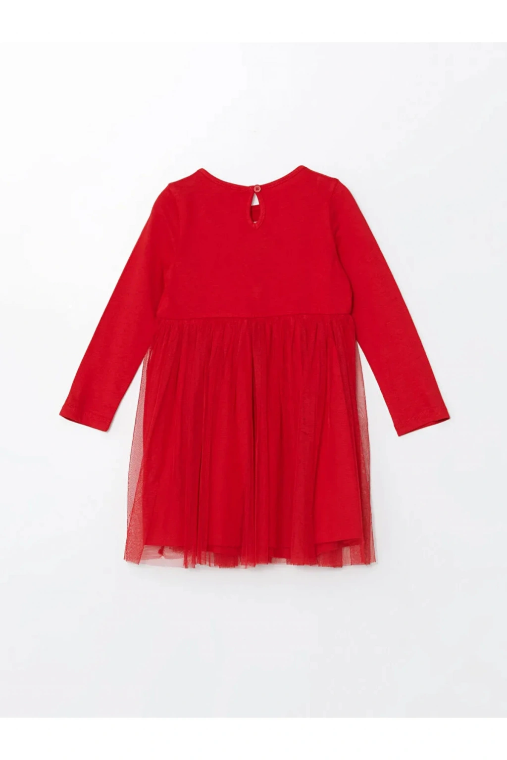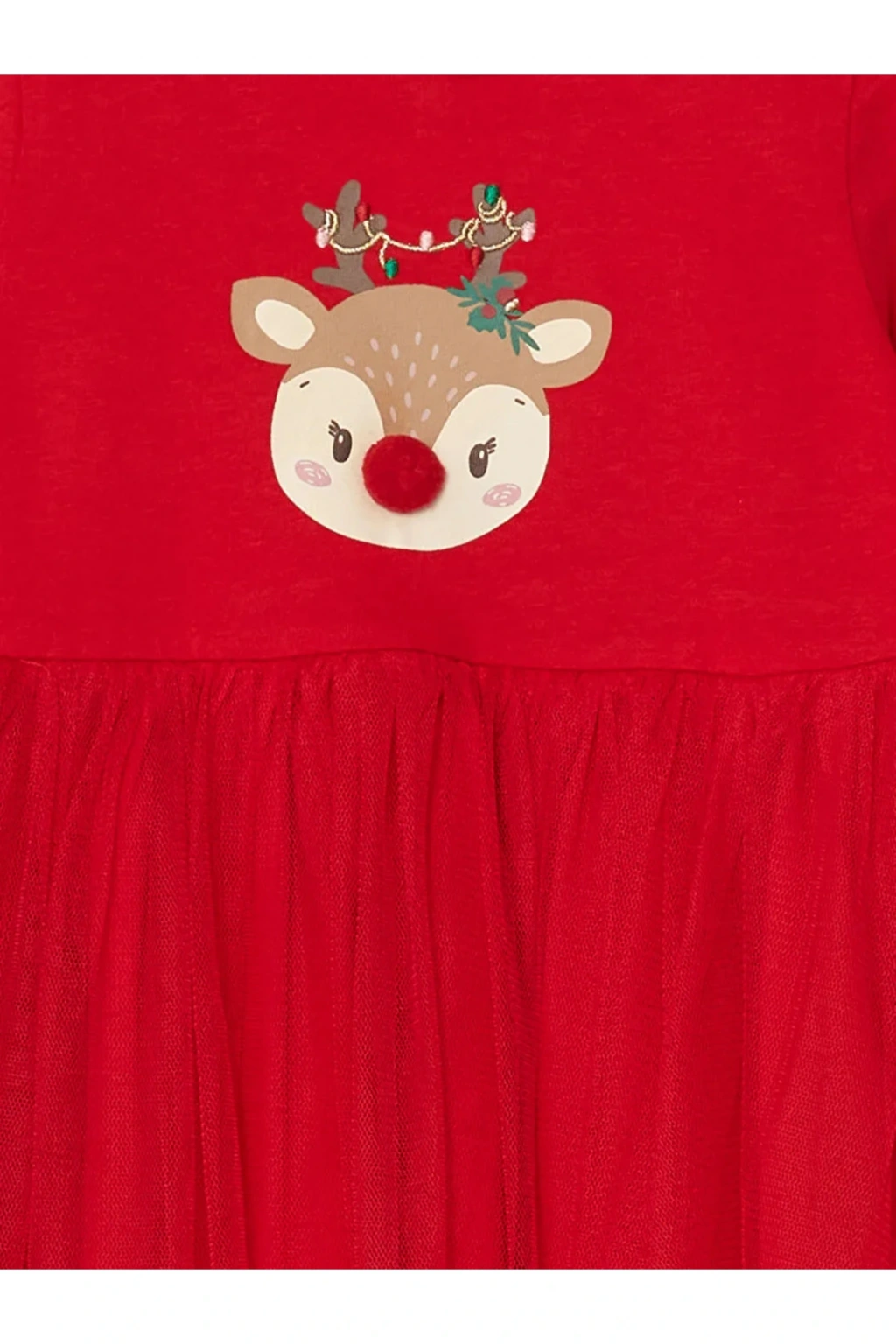 LCW Kids Kırmızı Bisiklet Yaka Yılbaşı Temalı Kız Çocuk Elbise
