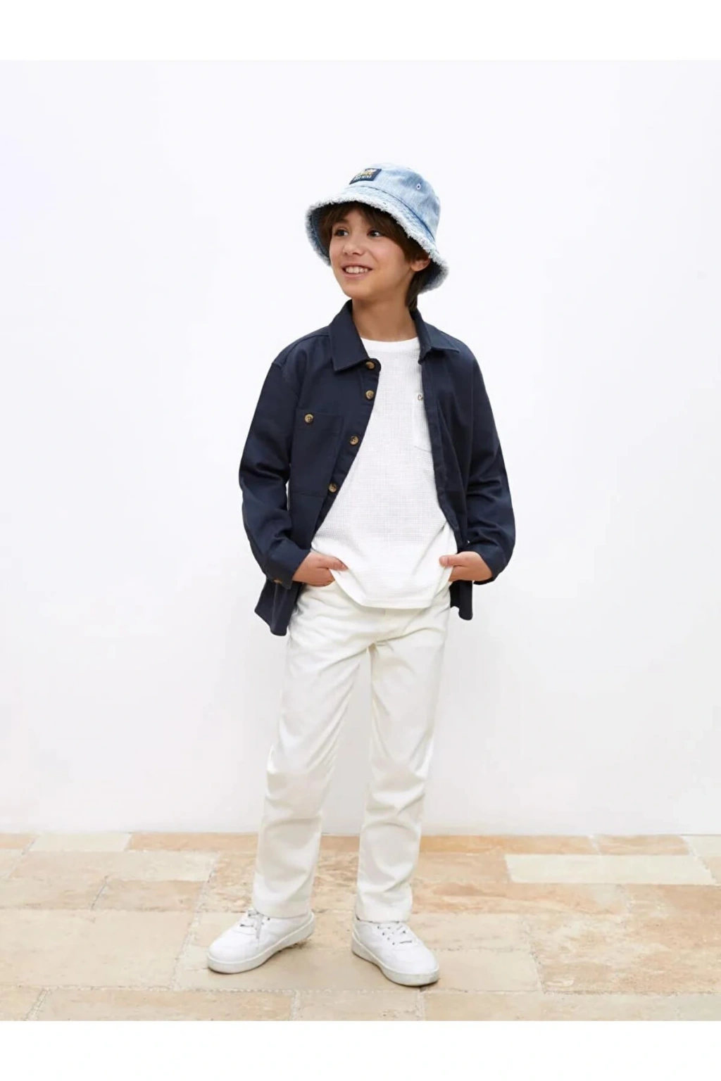 Manken 7-8 yaş beden ürün giyiyor.