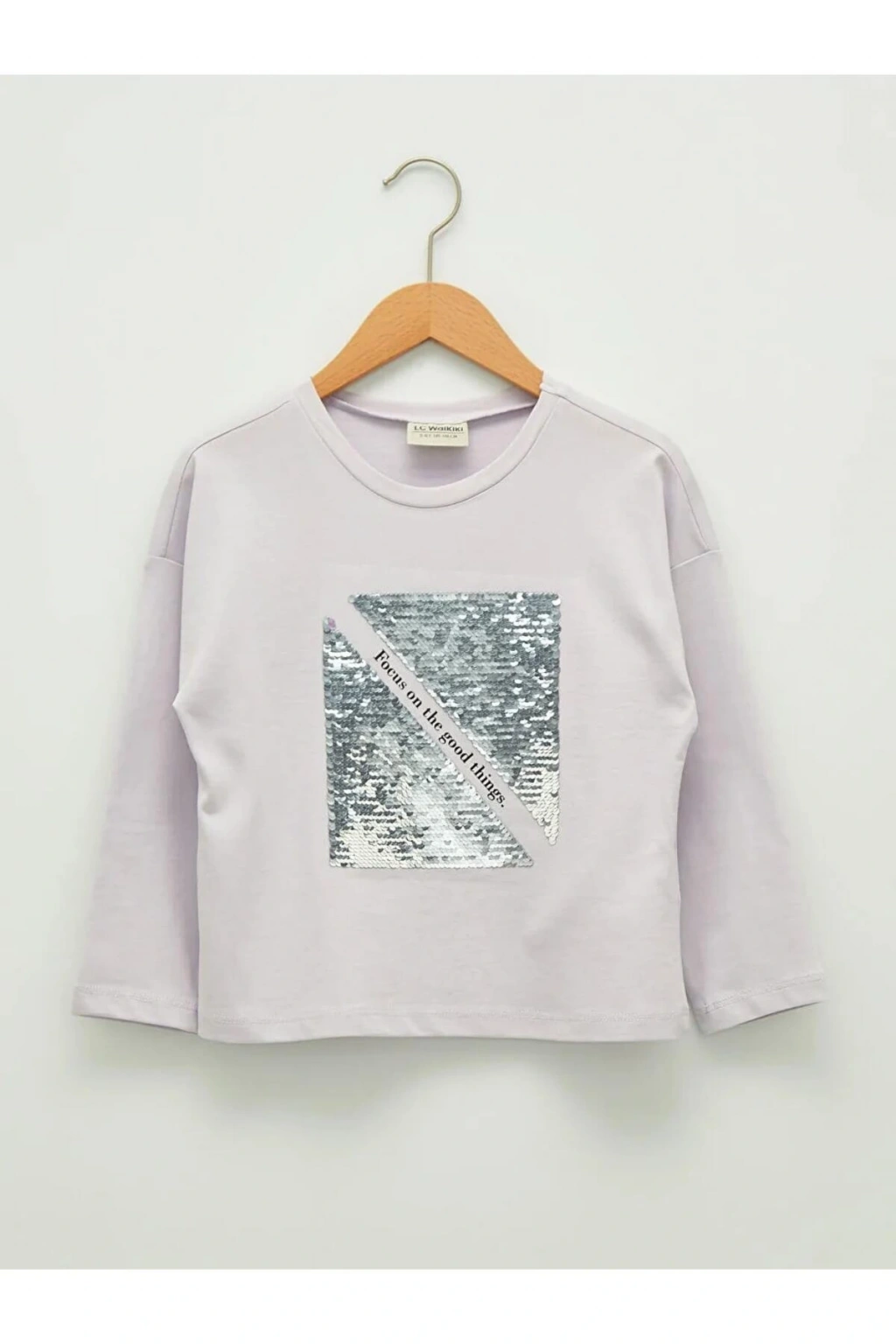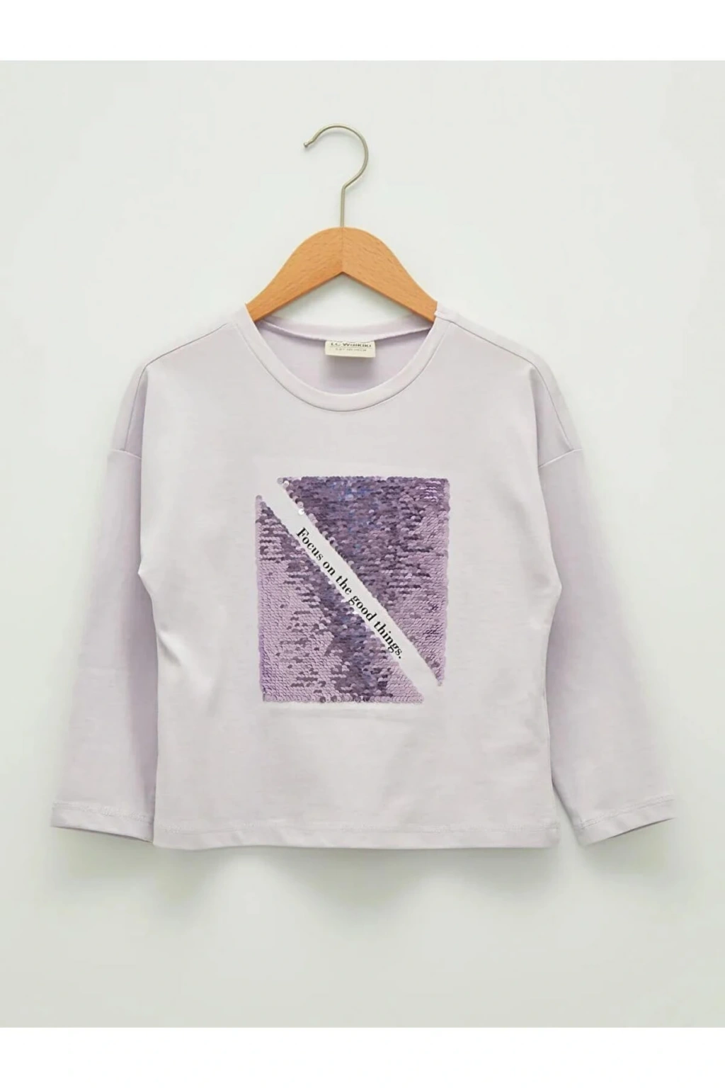 LCW Kids Lila Bisiklet Yaka Pul Payet İşlemeli Uzun Kollu Kız Çocuk Tişört