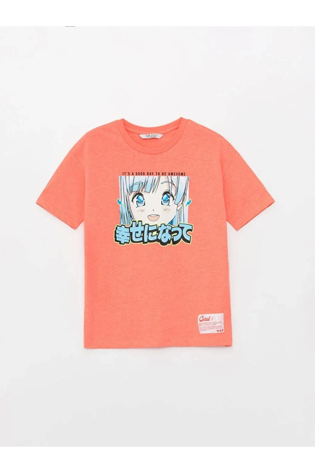 LCW Kids pembe Bisiklet Yaka Baskılı Kısa Kollu Kız Çocuk Tişört