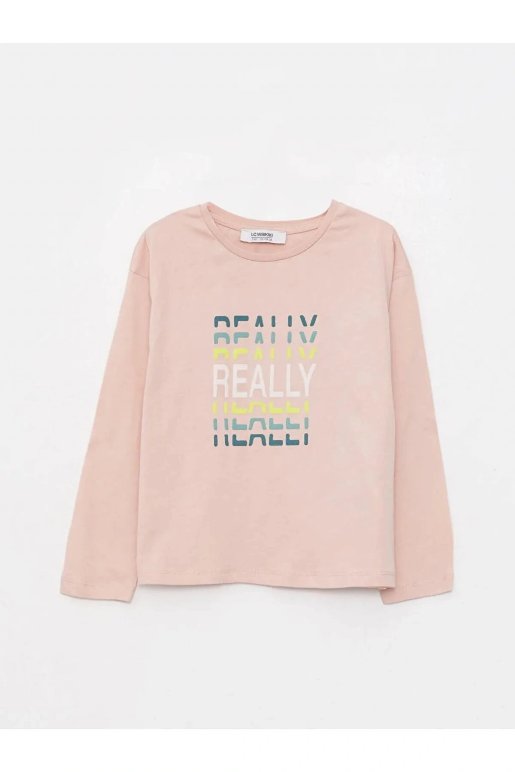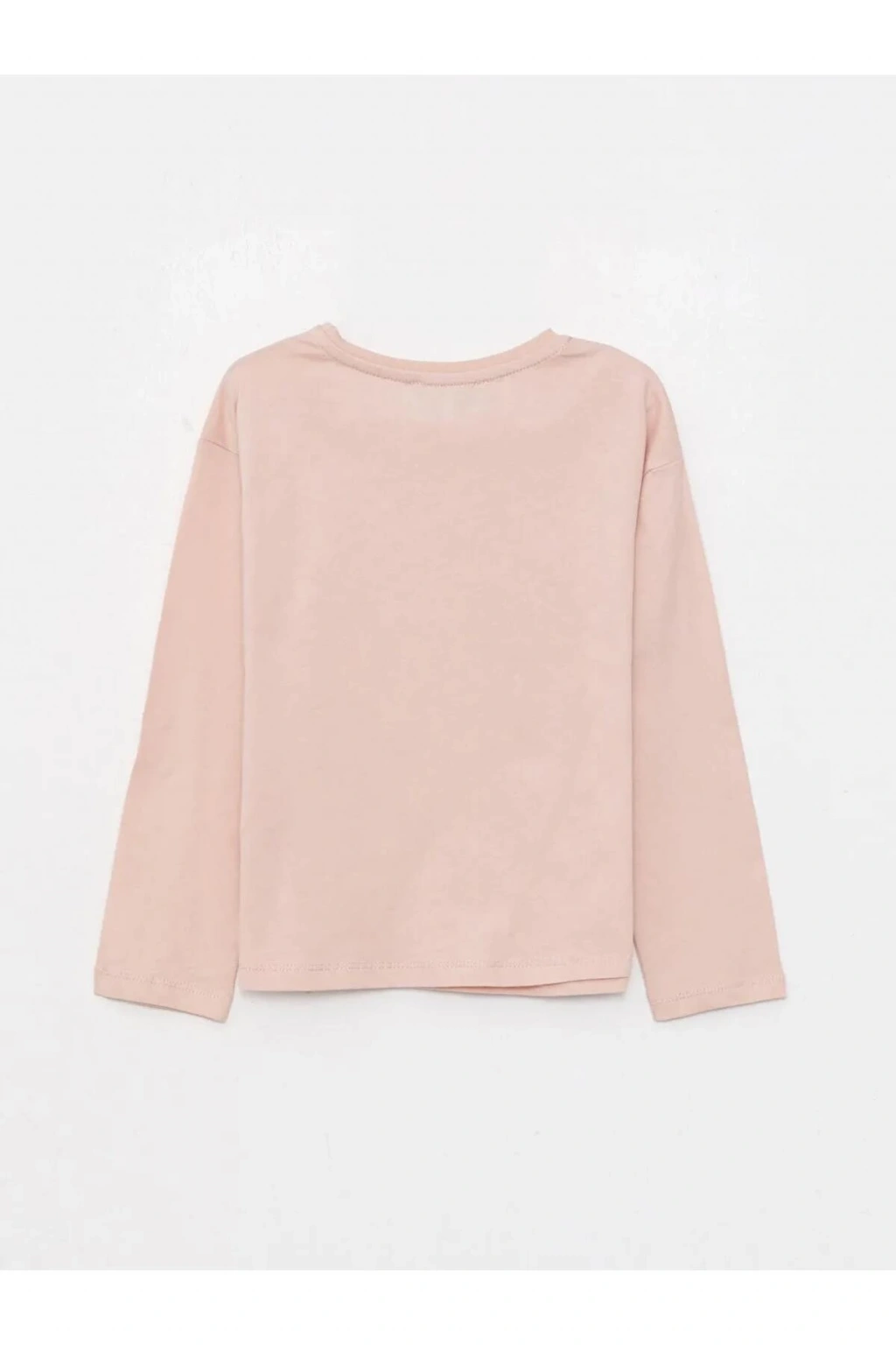 LCW Kids Pembe Bisiklet Yaka Baskılı Uzun Kollu Pamuklu Kız Çocuk Tişört