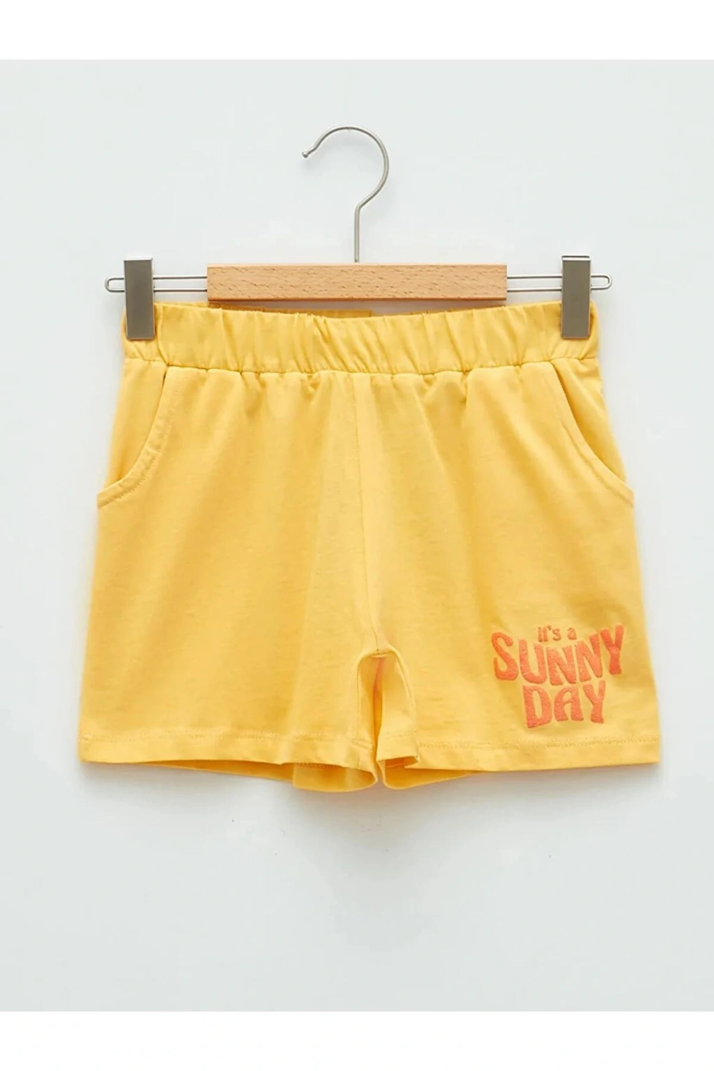 LCW Kids Sarı Beli Lastikli Baskılı Kız Çocuk Şort