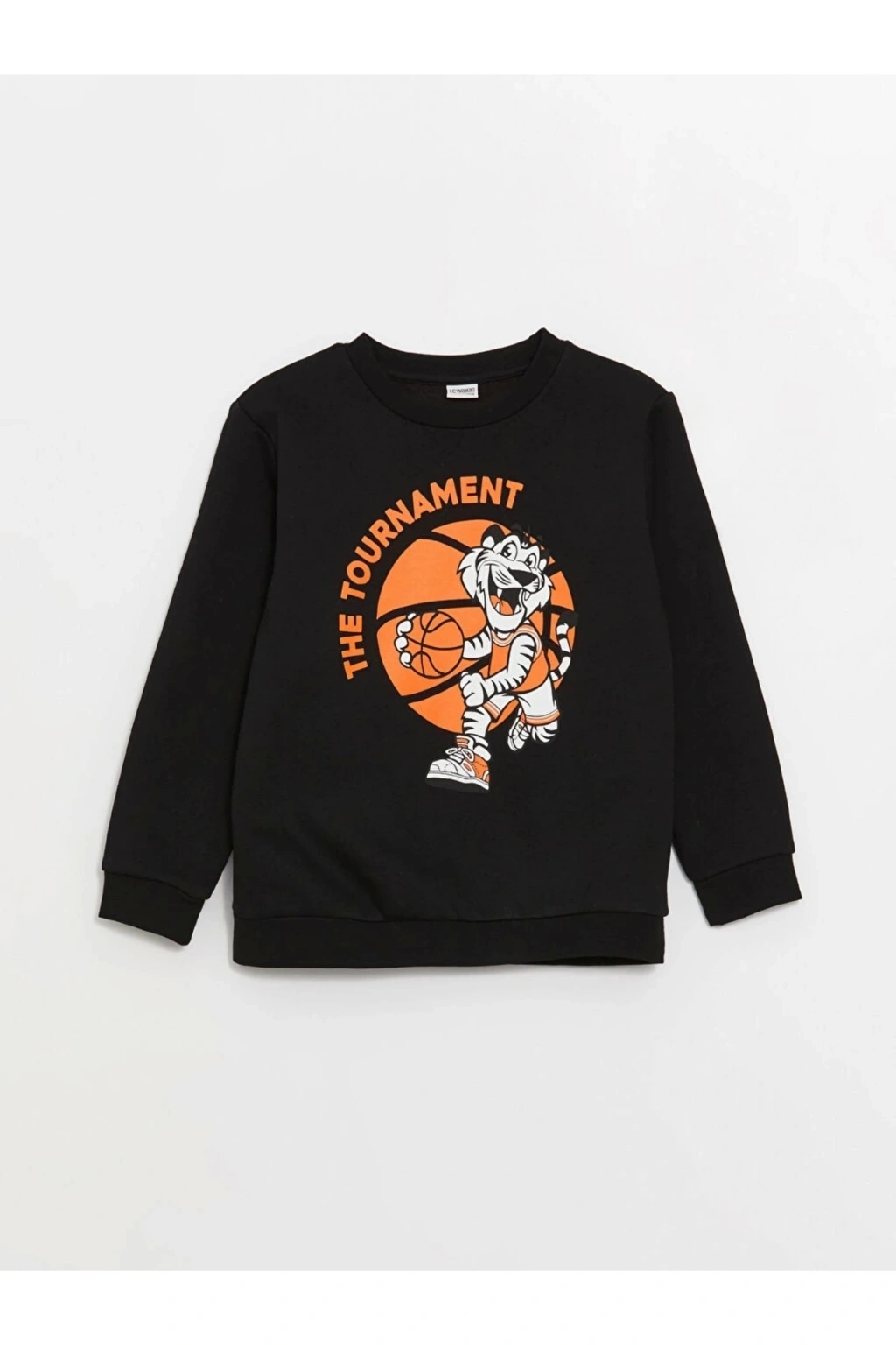 Lcw Kids Siyah Bisiklet Yaka Baskılı Uzun Kollu Erkek Çocuk Sweatshirt