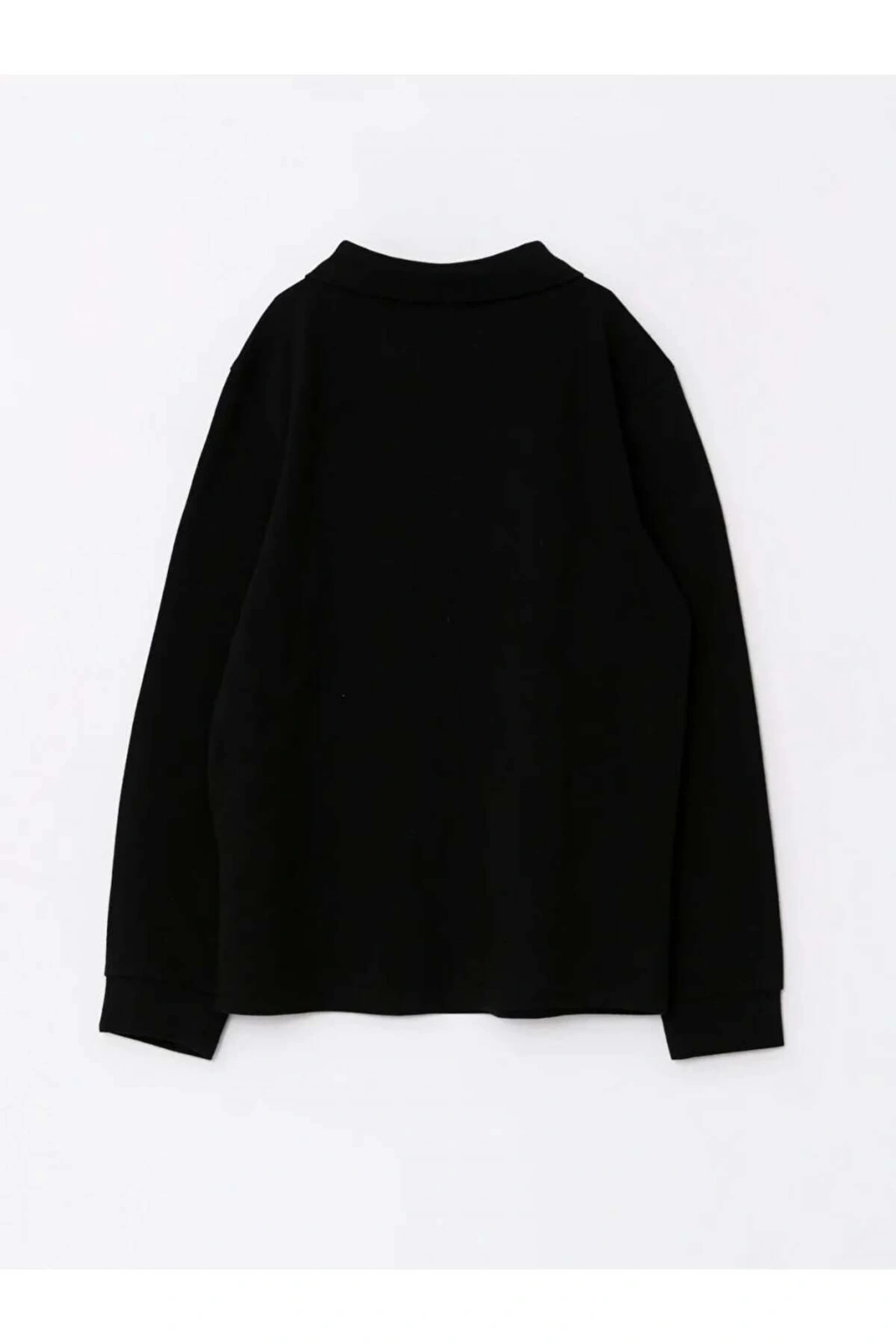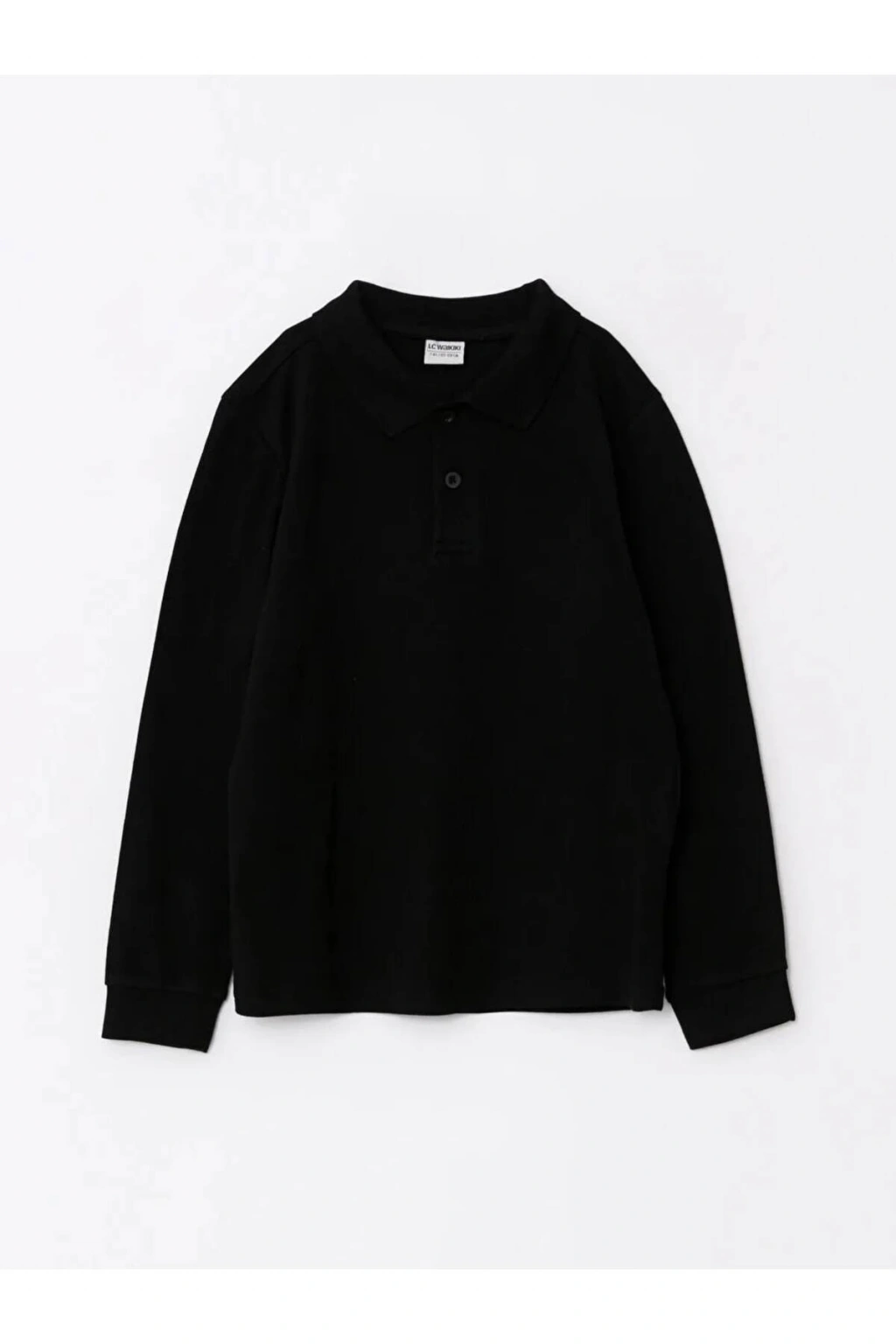 LCW Kids Siyah Polo Yaka Basic Uzun Kollu Erkek Çocuk Tişört