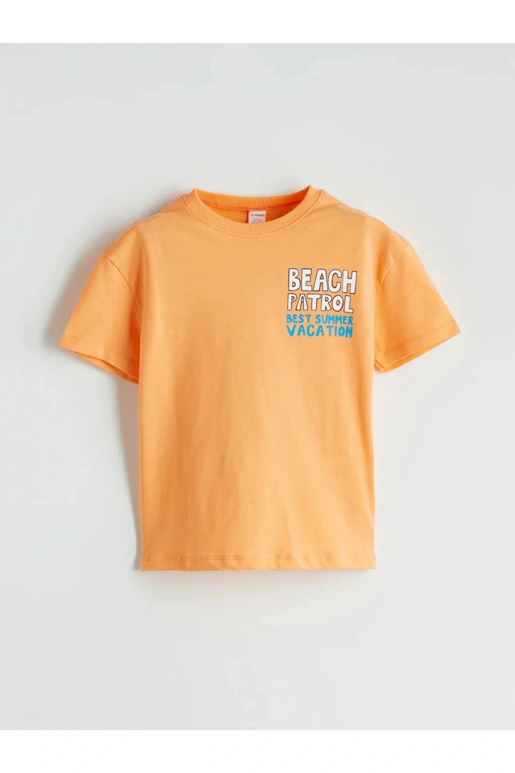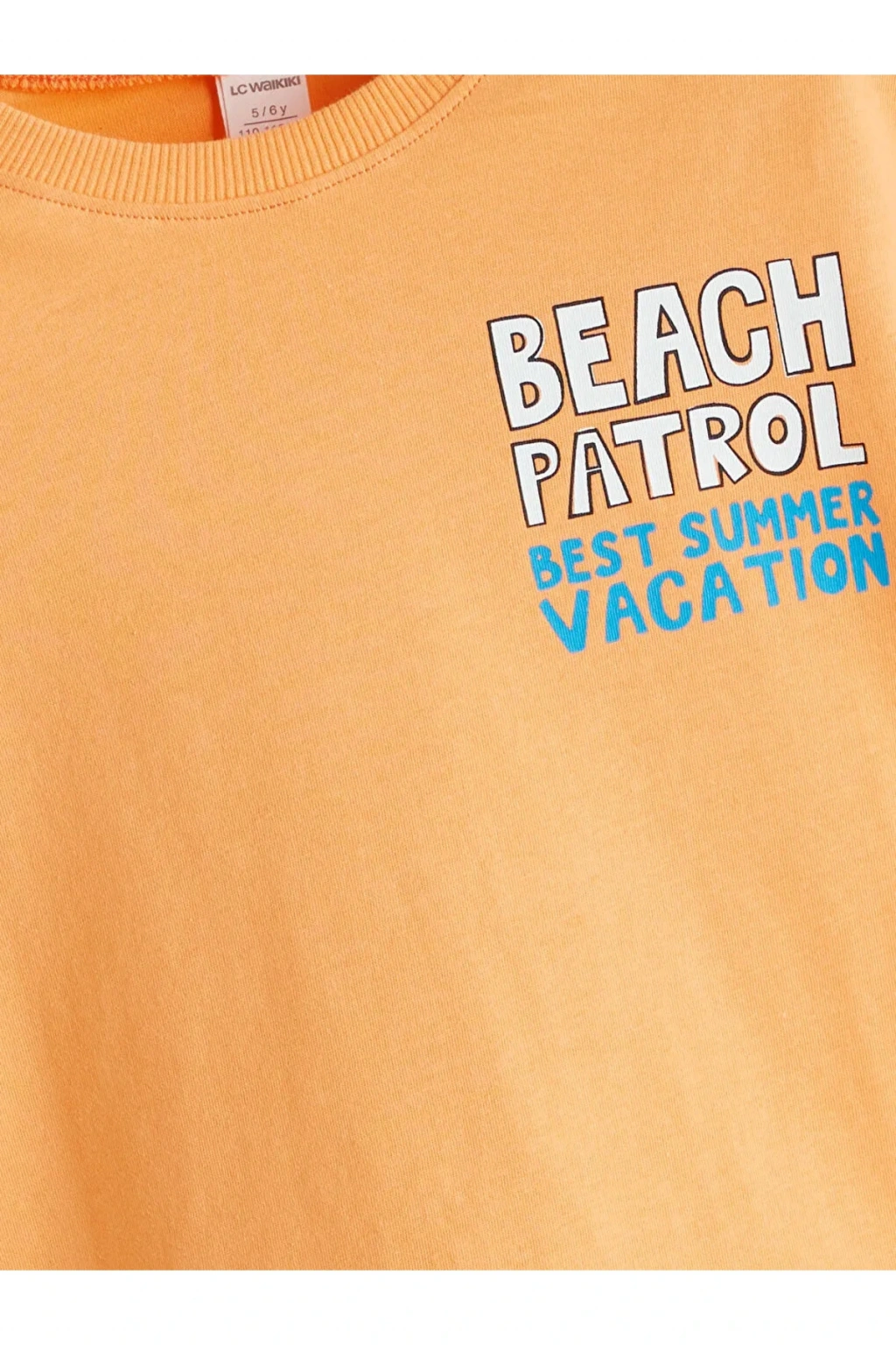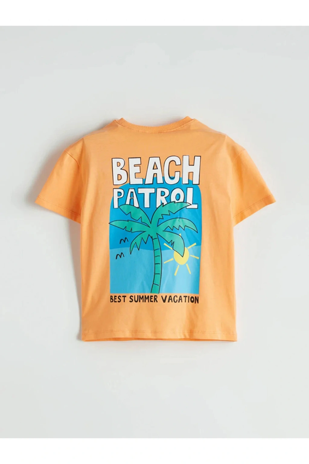 Penye kumaşıyla yumuşak ve nefes alabilen bir yapı sunan bu erkek çocuk tişört, bisiklet yaka tasarımı ve dikkat çekici baskısıyla günlük kombinlere eğlenceli bir dokunuş katar.