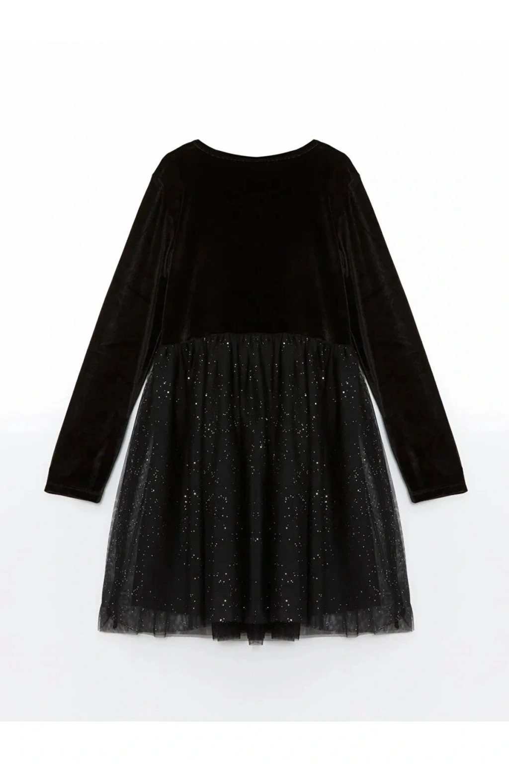 Bisiklet yaka kız çocuk elbise, eteği tüllü tasarımı ile şıklığı ve zarafeti bir araya getiriyor. Özel günlerde ve etkinliklerde çocuklarınız için ideal bir seçim.