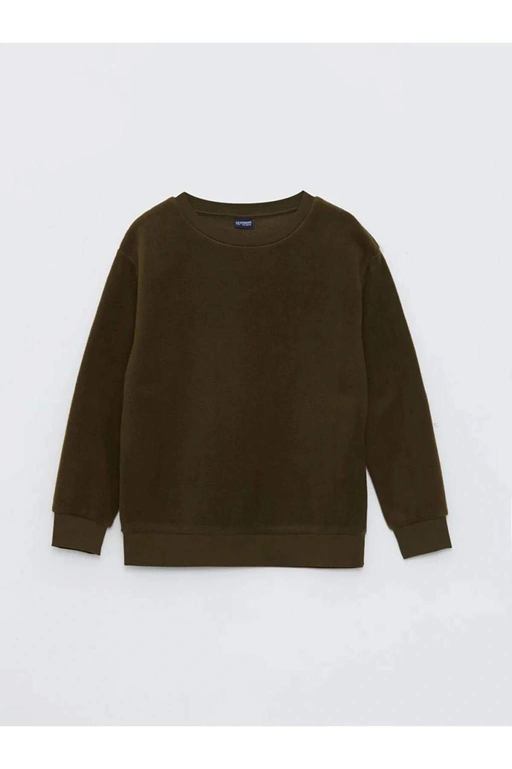 LCW Kids Yeşil Bisiklet Yaka Basic Uzun Kollu Polar Erkek Çocuk Sweatshirt