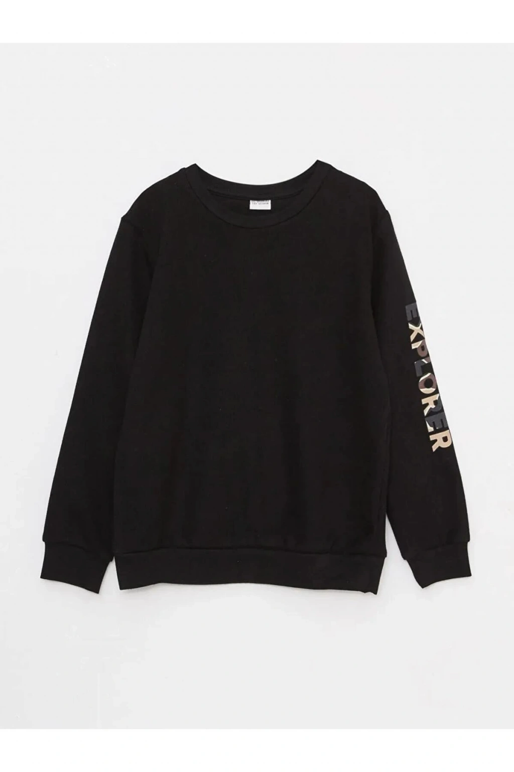 LCW KidsSiyah Bisiklet Yaka Baskılı Uzun Kollu Erkek Çocuk Tişört