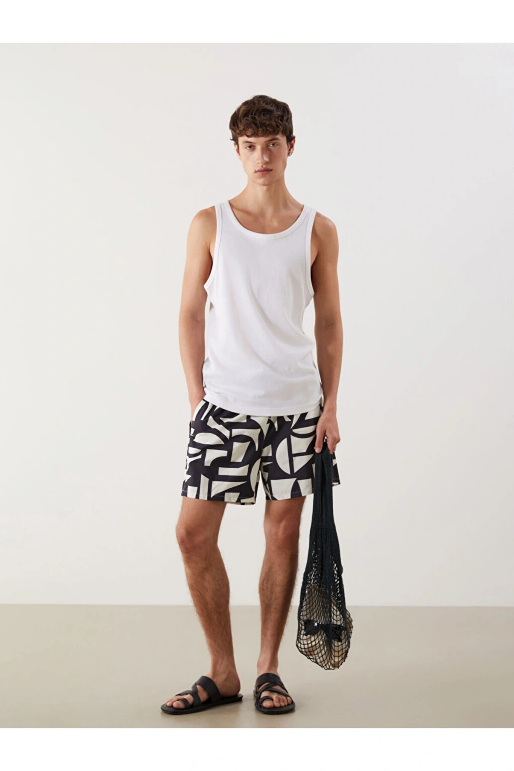 LCW SWIMWEAR Siyah Kısa Boy Desenli Erkek Deniz Şortu