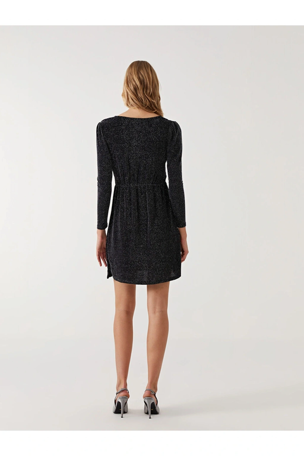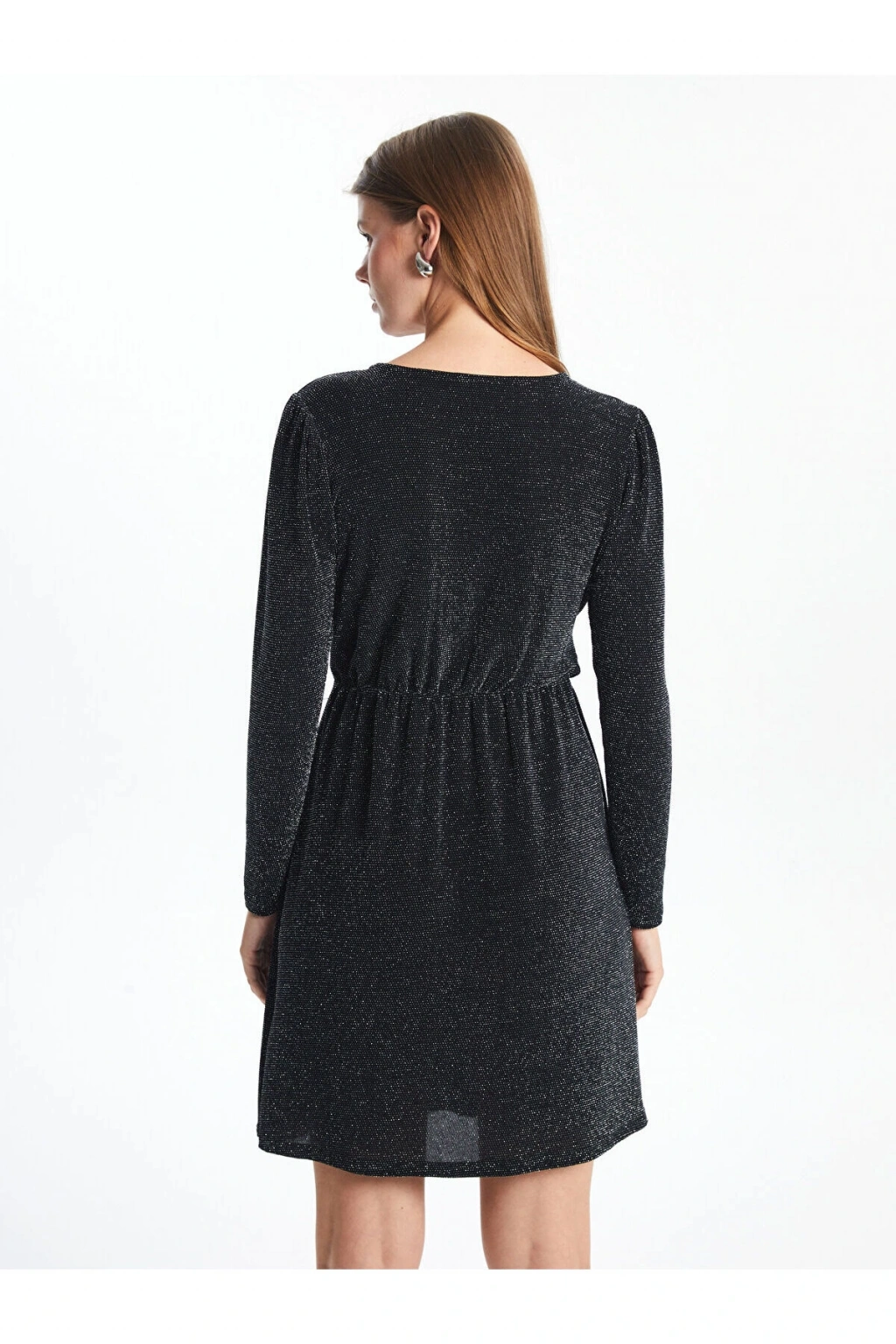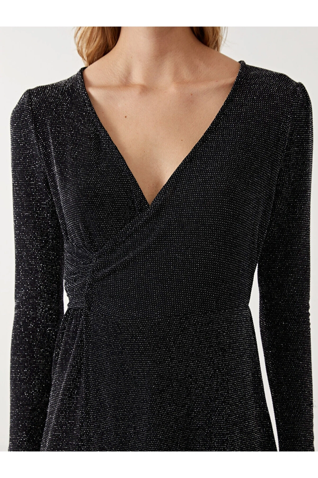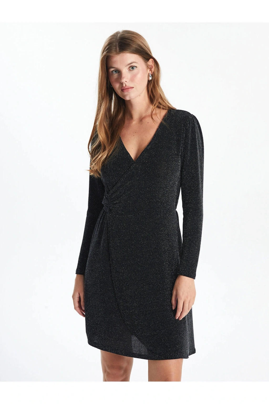 Cinsiyet: Kadın-Ürün Tipi: Elbise-Kumaş: -Kalıp: Standart & Regular-Kalınlık: İnce-Yaka: Kruvaze-Ana Kumaş: %3 Metalik iplik %4 ELASTAN %93 Poliamid-Desen: Düz-Malzeme: -Kol Boyu: Uzun Kollu.; Açıklama Kruvaze yaka detayıyla tasarlanmış elbise, parlak görünümüyle özel etkinliklerde tercih edebileceğiniz bir seçenektir Uzun kolları ile hem şıklığı hem de konforu bir araya getirir
