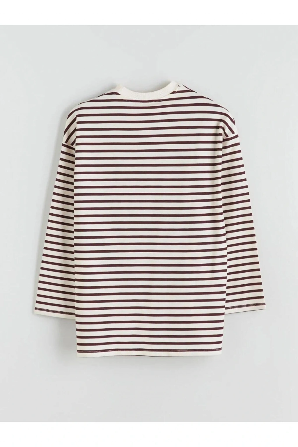 Ürün Açıklaması Bisiklet yaka çizgili kadın sweatshirt tunik, 2 iplik kumaştan üretilmiştir.; Arkası daha uzun ve yırtmaçlı tasarıma sahiptir.; Ürün İçeriği ve Özellikleri Ürün İçeriği: Ana Kumaş: %26 Polyester %74 Pamuk Ürün Özellikleri: Satıcı: LC Waikiki Marka: LCW Modest Ürün Tipi: Sweatshirt Tunik Cinsiyet: Kadın Desen: Çizgili Kalınlık: Orta Kalınlık Kalıp: Loose & Bol Kol Boyu: Uzun Kollu Koleksiyon: Tesettür Giyim Kumaş: 2 İplik Uzunluk: Basen Boy Yaka: Bisiklet Yaka