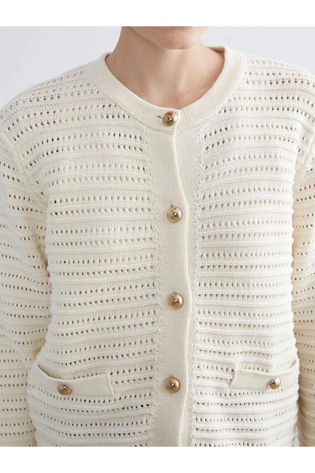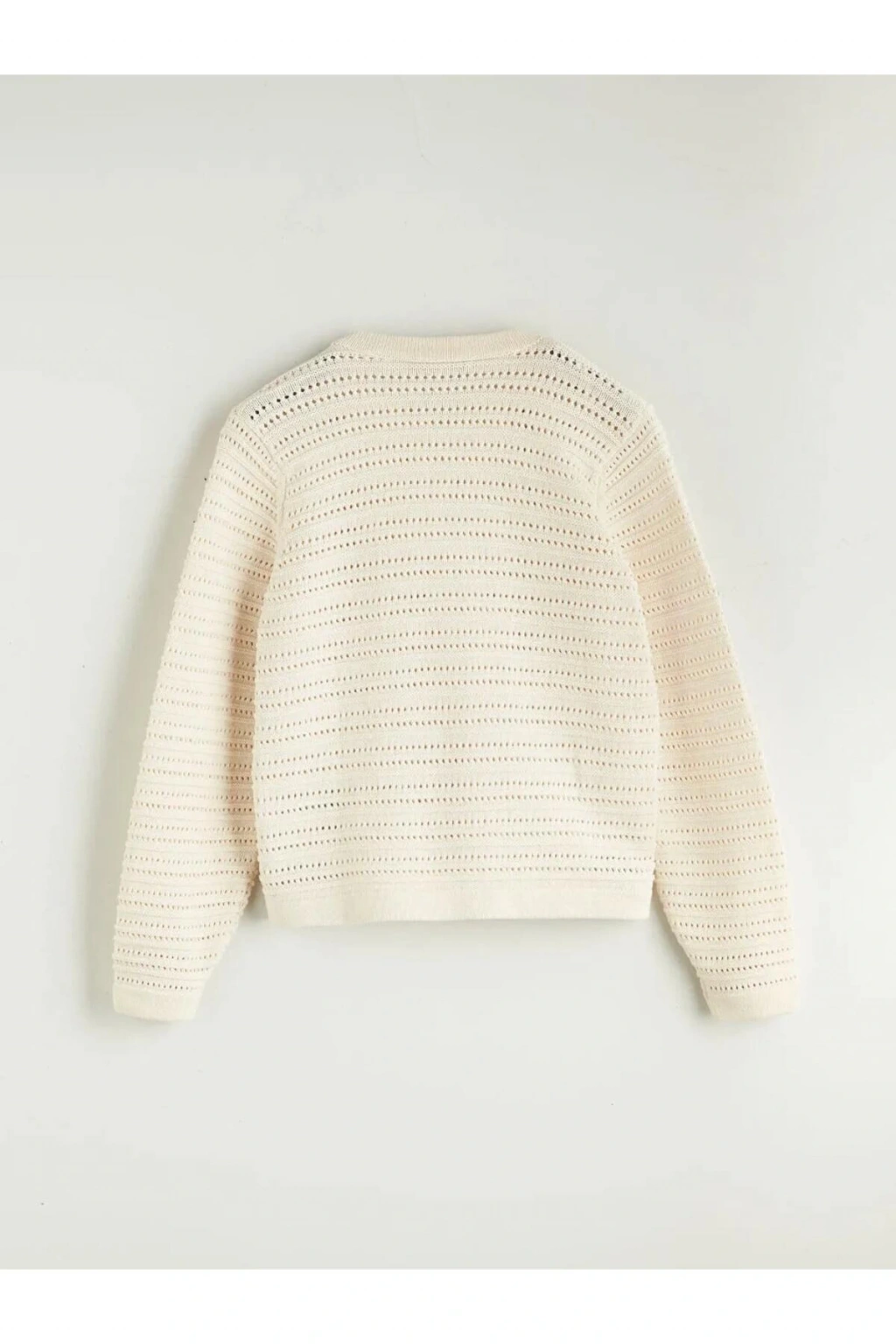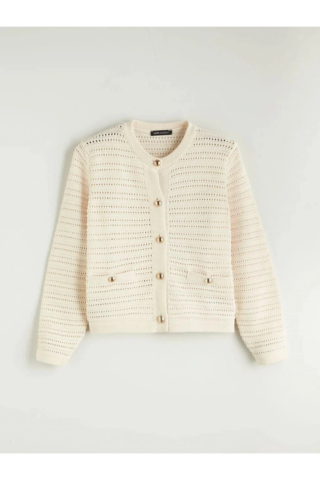 LCW Modest Ekru Bisiklet Yaka Ajurlu Kadın Triko Hırka