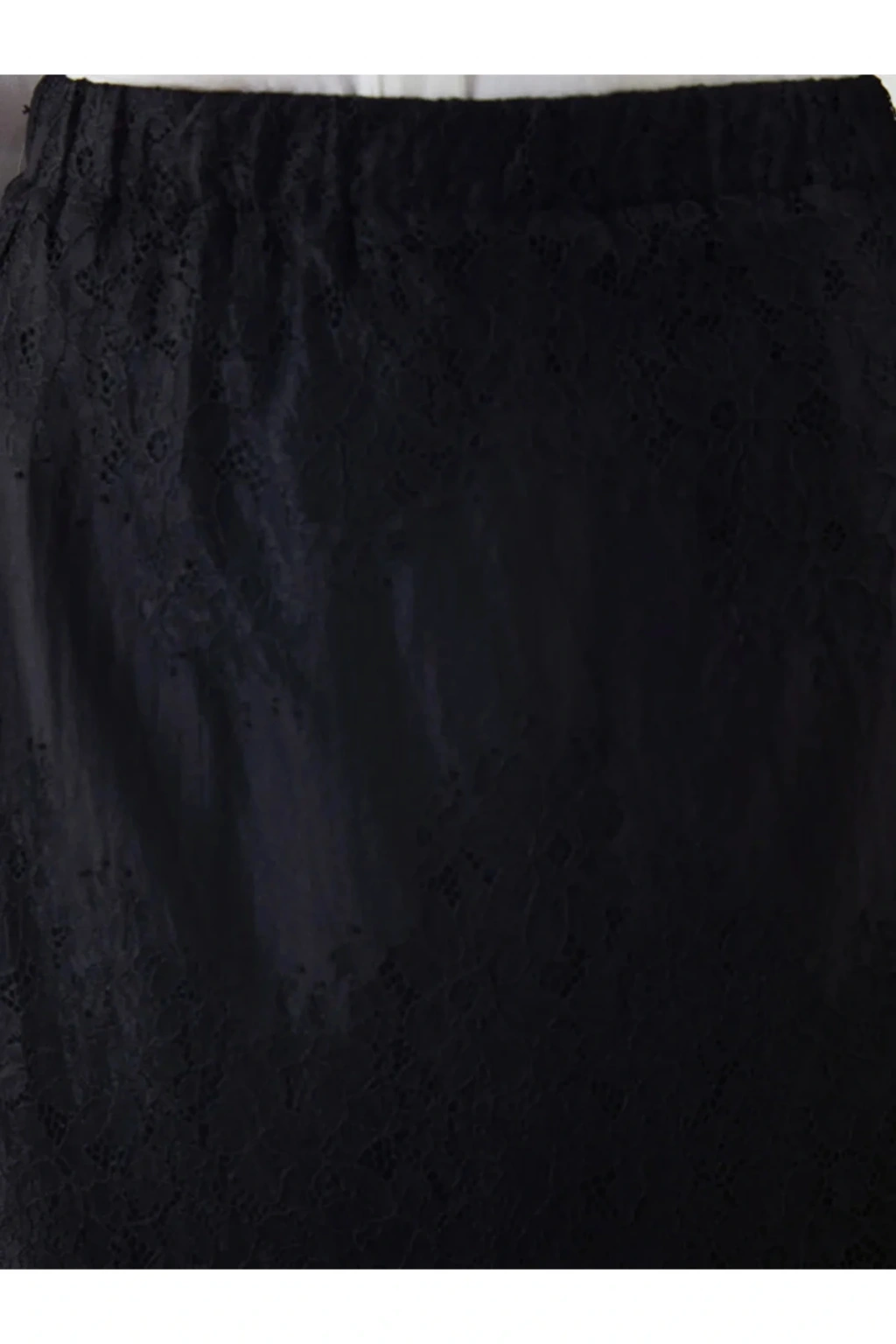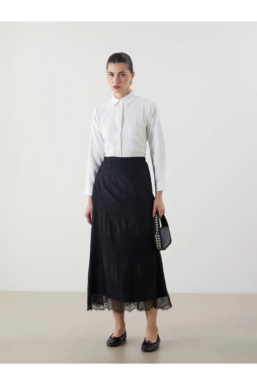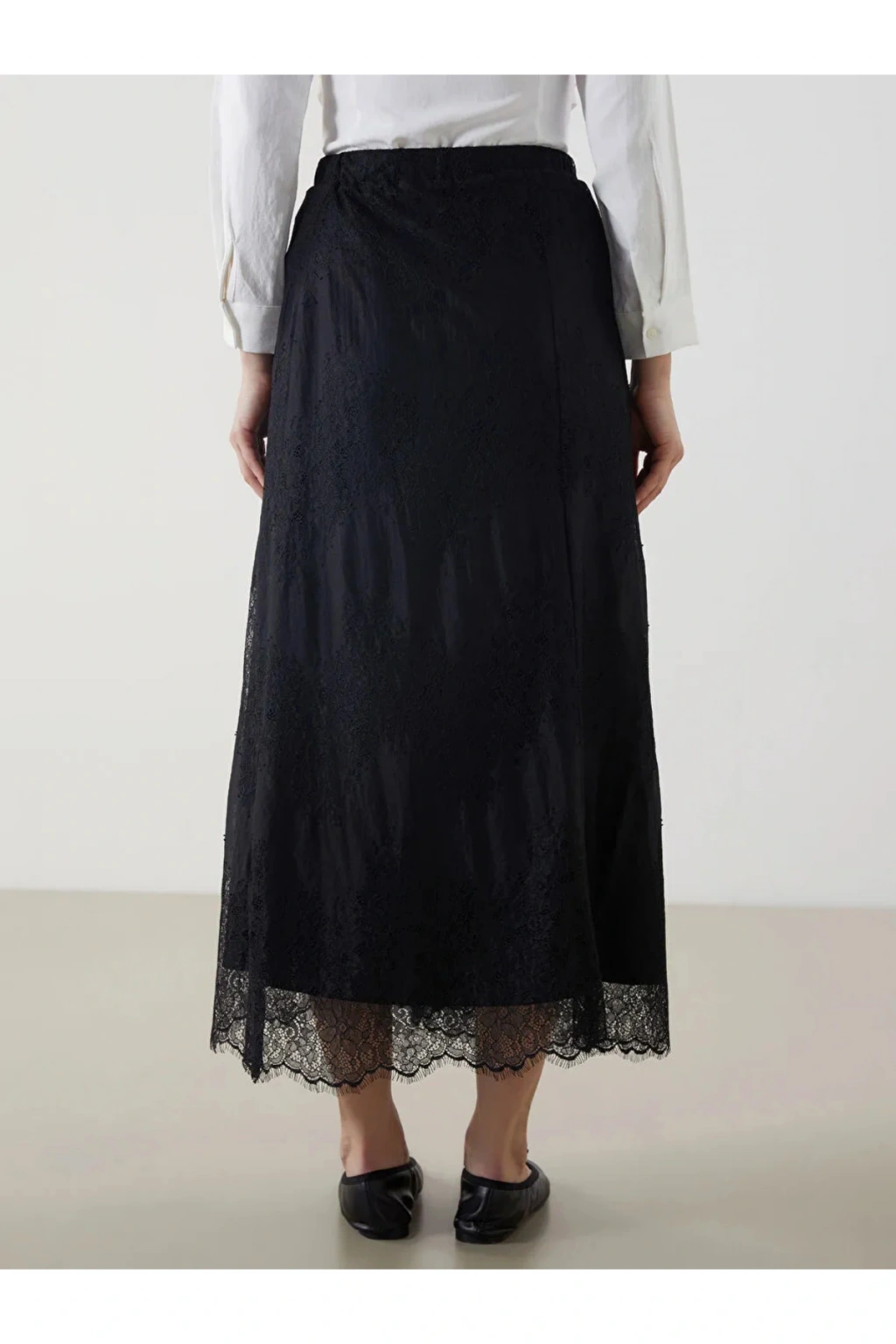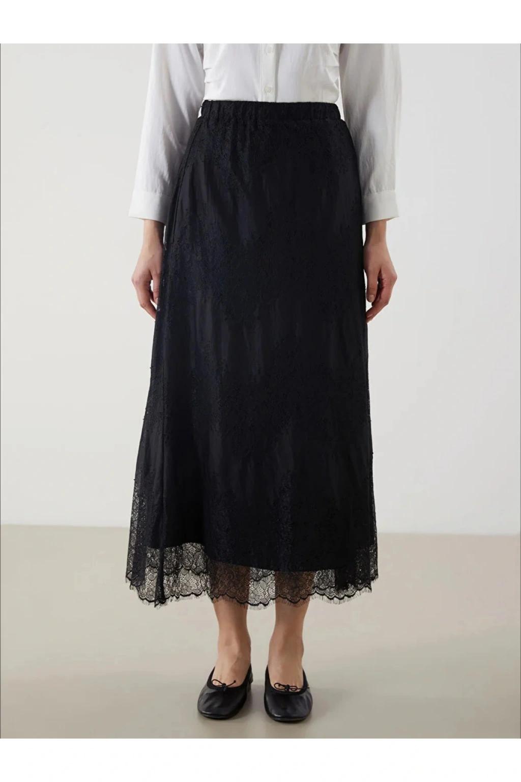 LCW Modest Siyah Beli Lastikli Kendinden Desenli Brode Etek