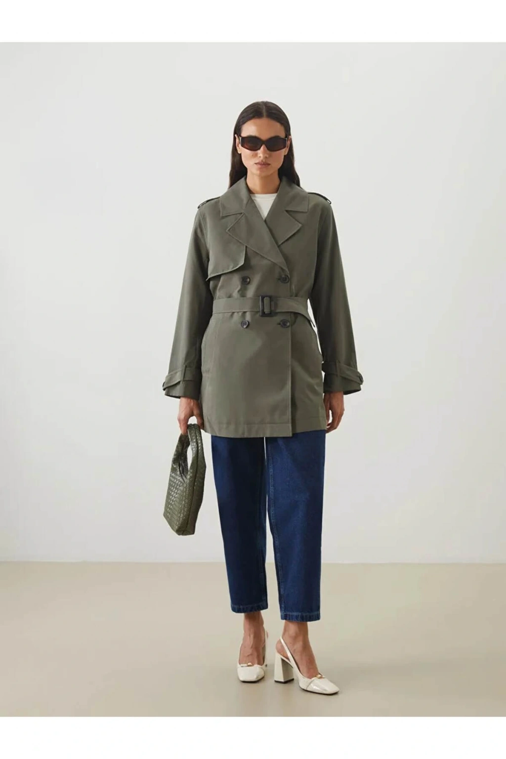 LCW ModestHaki Kruvaze Yaka Kadın Trençkot