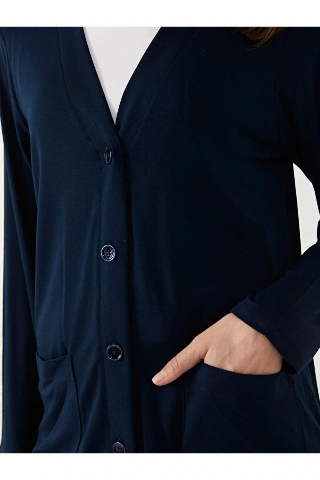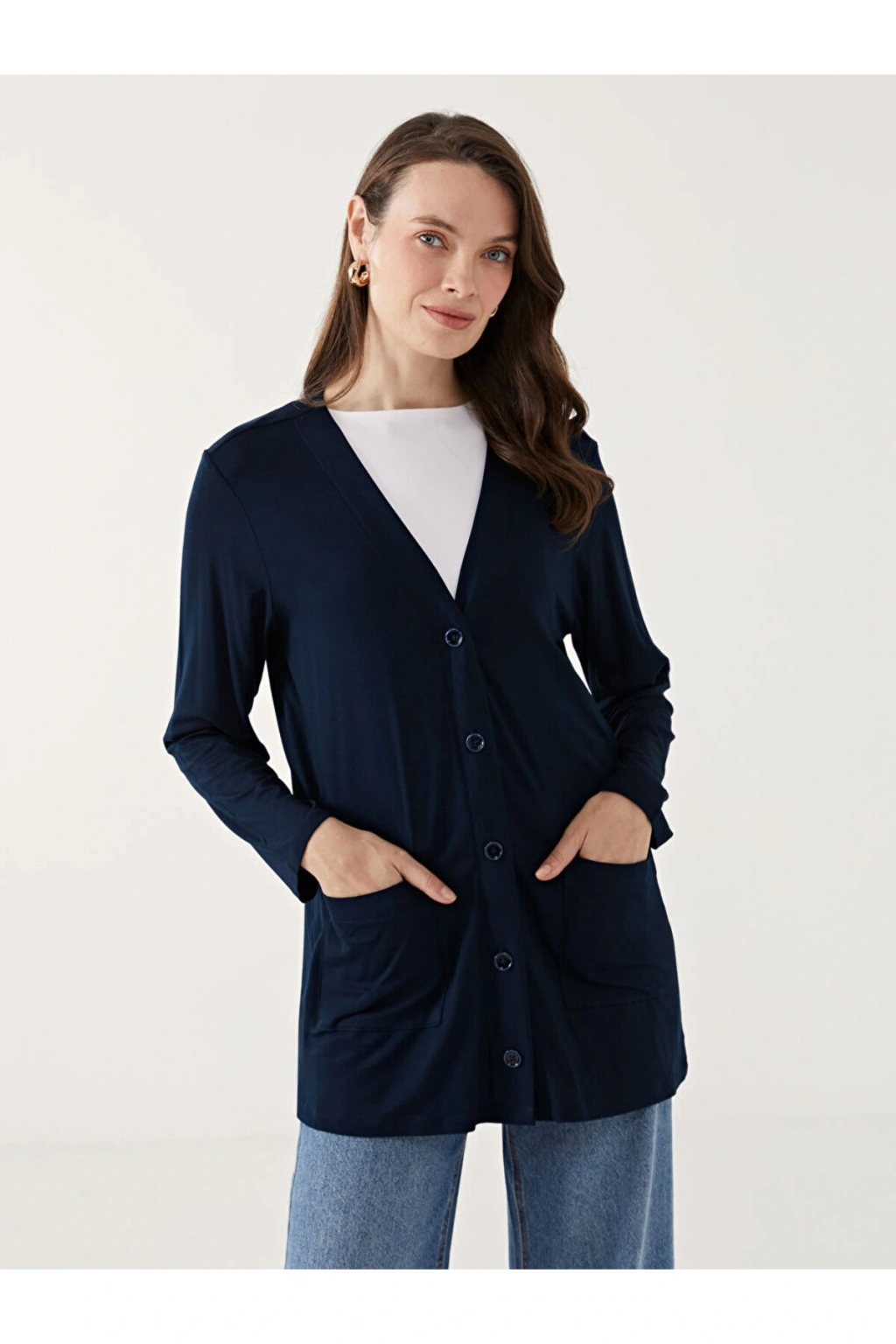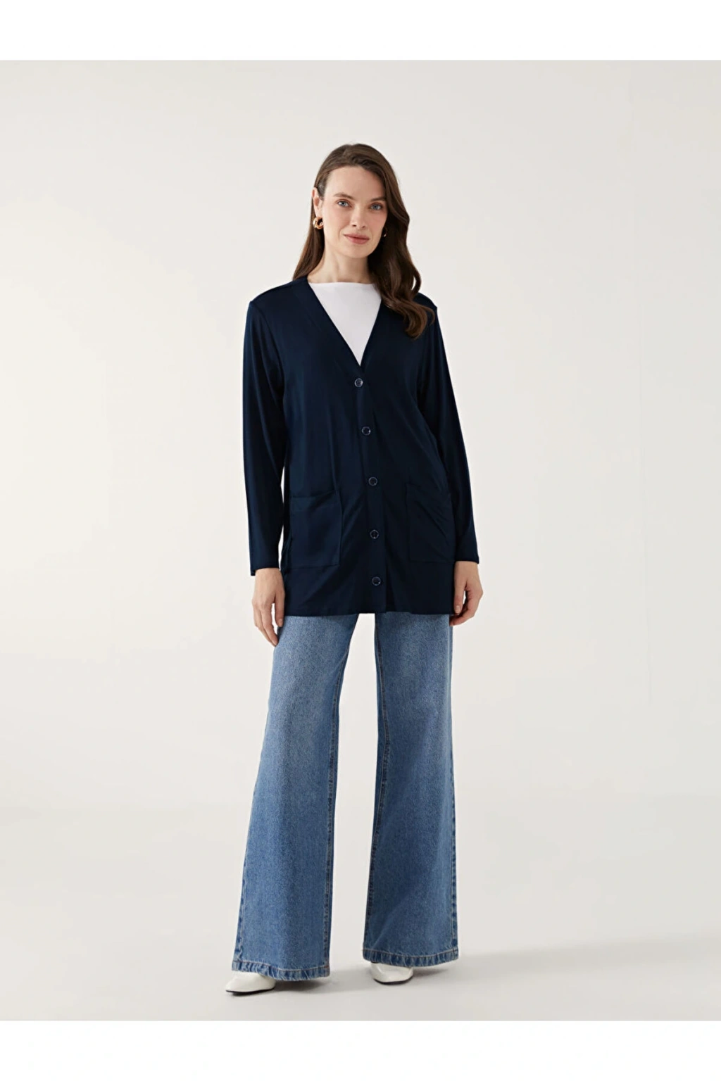 Cinsiyet: Kadın-Ürün Tipi: Hırka-Kumaş: Penye-Kalıp: Standart & Regular-Kalınlık: Orta Kalınlık-Yaka: V Yaka-Ana Kumaş: %4 ELASTAN %96 VİSKOZ-Desen: Düz-Malzeme: -Kol Boyu: Uzun Kollu.; Açıklama V yaka düz uzun kollu hırka, süprem kumaştan üretilmiştir Hafif ve nefes alabilen yapısı ile gün boyu konfor sunar Önden düğme kapamalı tasarımı sayesinde kolaylıkla giyilir Çift cep detayı bulunur