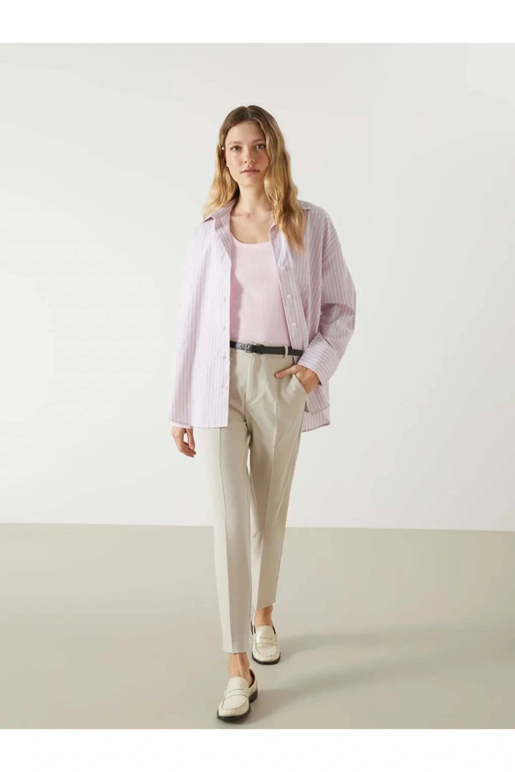 Beli kemerli havuç kesim düz pantolonu, ofisten sokak modasına kadar her alanda rahatlık ve stil sunar. İki yandan cepli tasarımı sayesinde küçük eşyalarınızı taşıyabilirsiniz, kemer detayı ile belinizi zarifçe sarar.