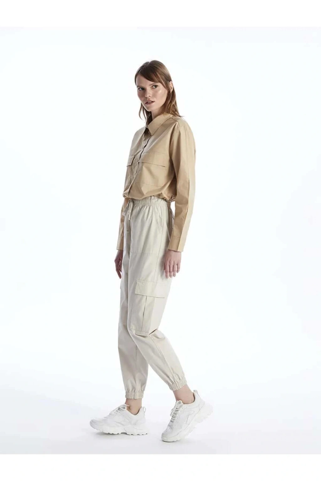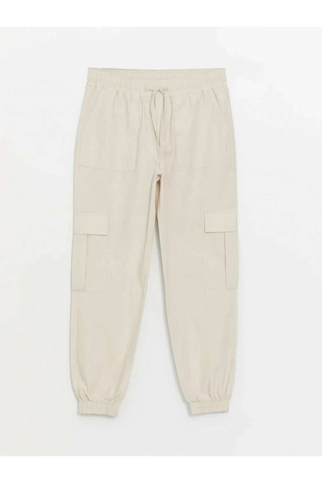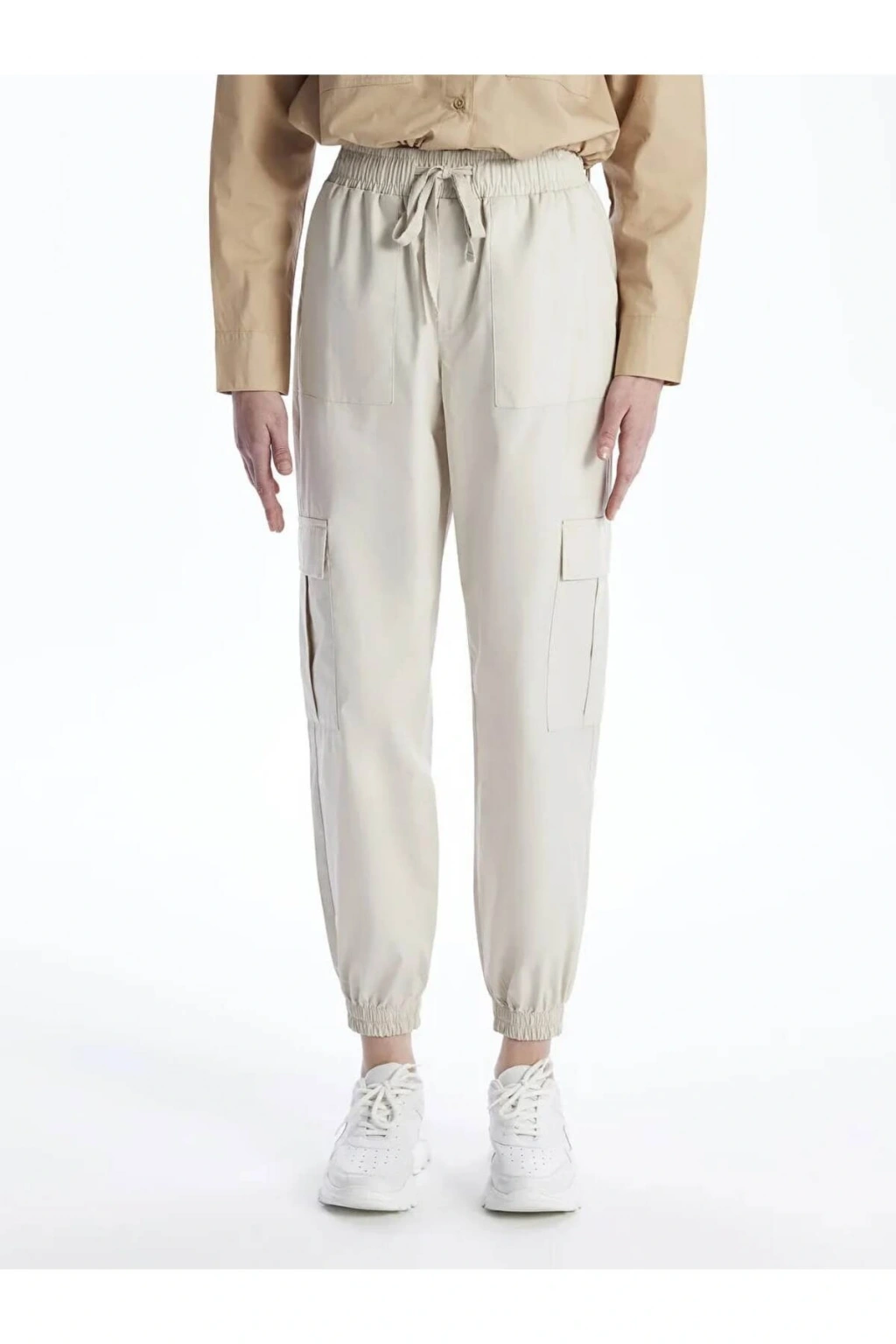 Kadın beli lastikli düz jogger pantolonu, belindeki ayarlanabilir bağlama detayıyla istediğiniz gibi ayarlayabilirsiniz.; Lastikli paçaları ile sportif bir görünüm sunan pantolonun her iki yanında cep bölmesi bulunur.