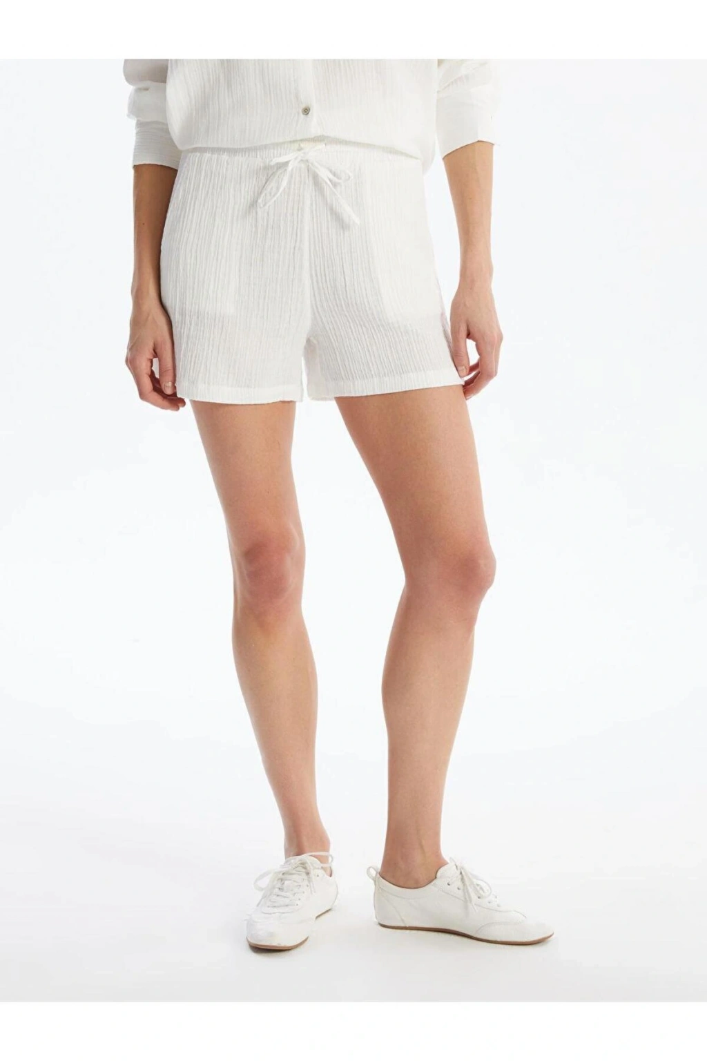 Ürün Açıklaması Beli lastikli dokulu kadın şort, esnek lastikli beliyle gün boyu rahatlık sunar.; Dokulu kumaşı ise hem şık bir görünüm hem de konfor sağlar.; Manken Bilgisi Göğüs: 83 cm Bel: 62 cm Basen: 93 cm Boy: 178 cm Manken 38 beden ürün giyiyor.; Manken Bilgisi Boy: 178 cm Kilo: 62 kg Manken 38 beden ürün giyiyor.; Ürün İçeriği ve Özellikleri Ürün İçeriği: Ana Kumaş: %1 ELASTAN %99 Pamuk Ürün Özellikleri: Satıcı: LC Waikiki Marka: LCW Vision Ürün Tipi: Şort Cinsiyet: Kadın Kalıp: Loose & Bol Kumaş: Müslin Desen: Düz Malzeme: Yüksek Pamuk İçerir