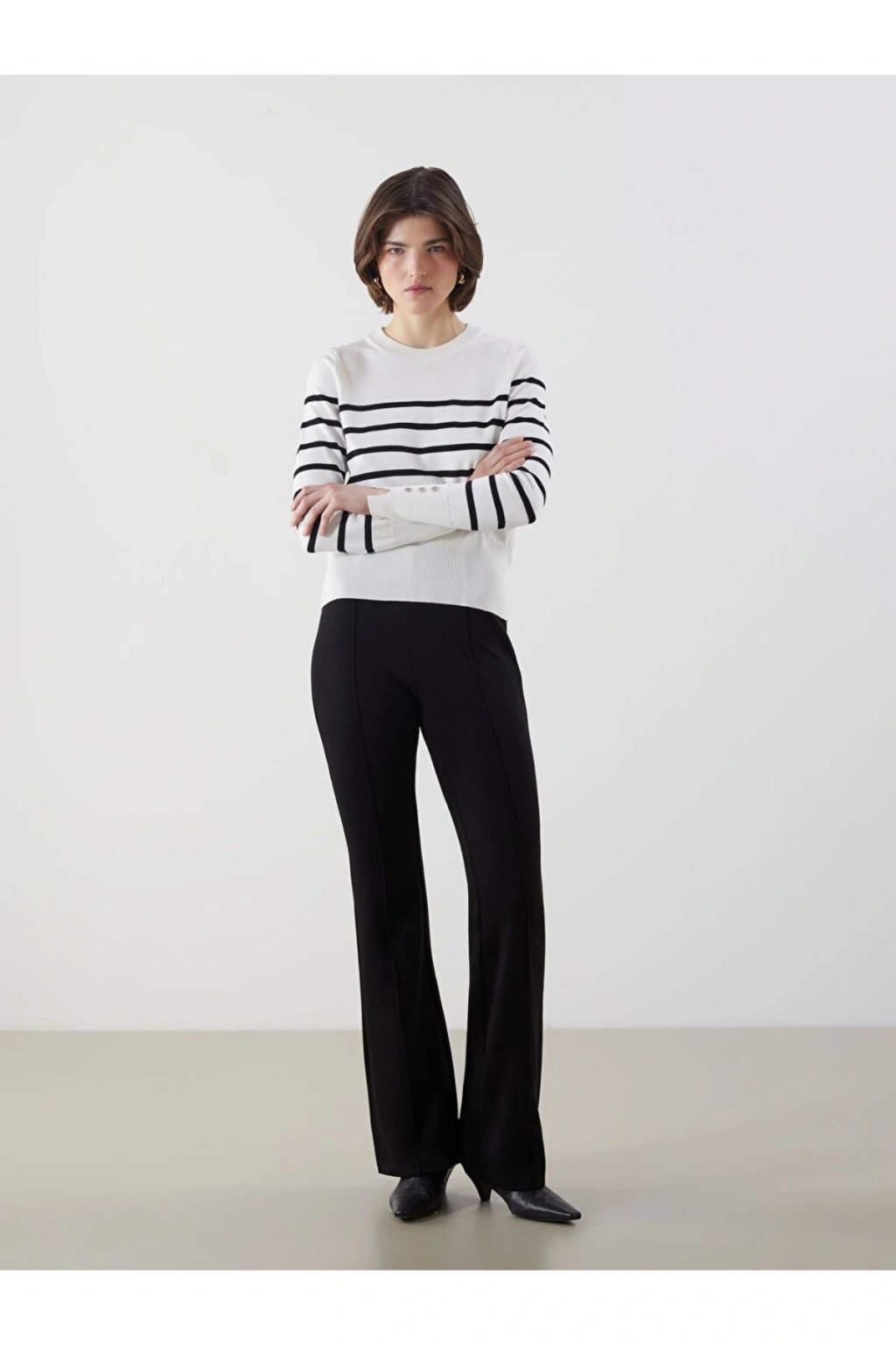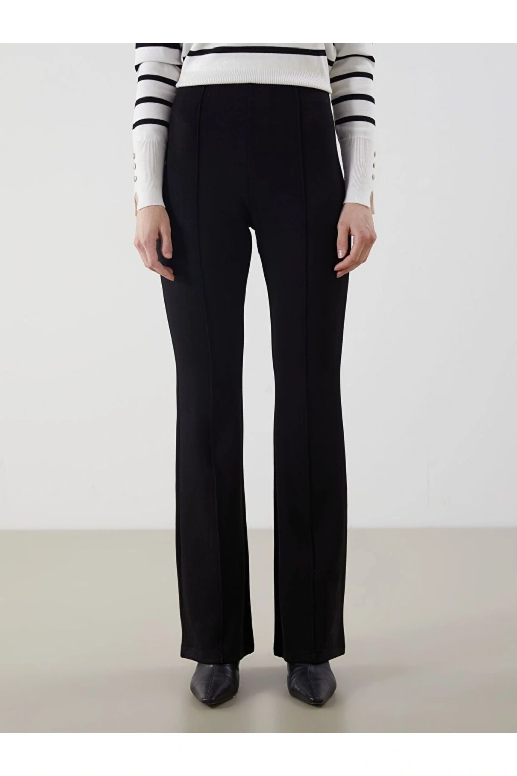 Ürün AçıklamasıYüksek belli kadın pantolon, paçaya doğru genişleyen bir kesime sahiptir ve bacakların ön kısmında boydan boya dikiş detayı bulunur.; Ürün İçeriği ve ÖzellikleriÜrün Tipi: PantolonCinsiyet: KadınKalıp: Dar & SlimKumaş: İnterlokBel Fiti: Beli LastikliDesen: DüzPaça Fiti: İspanyol PaçaKalınlık: Orta Kalınlık