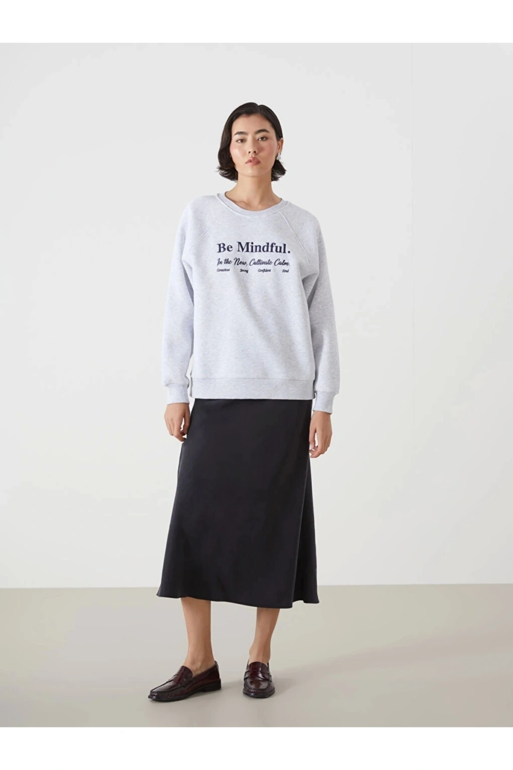 Bisiklet yaka nakışlı uzun kollu sweatshirt, içi yumuşak tüylü, 3 iplik şardonlu kumaştan üretilmiştir. Bilek ve alt kısmındaki ribana detayları sayesinde vücuda tam otururak soğuk havanın içinize girmesini engeller.