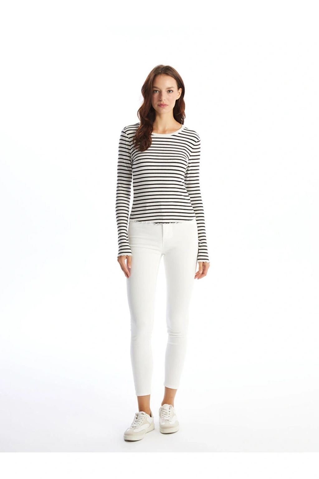 Ürün Açıklaması Bisiklet yaka uzun kollu çizgili tişört, kaşkorse kumaştan üretilmiştir.; Bu sayede vücuda tam oturarak mükemmel uyumlu bir görünüm sunar.; Ürün İçeriği ve Özellikleri Ürün İçeriği: Göğüs: 80 cm Bel: 59 cm Basen: 87 cm Boy: 178 cm Manken M beden ürün giyiyor.; Ürün İçeriği: Ürün Özellikleri: Satıcı: LC Waikiki Marka: LCW Vision Ürün Tipi: Tişört Cinsiyet: Kadın Kalıp: Süper Skinny & Ekstra Dar Yaka: Bisiklet Yaka Desen: Çizgili Kumaş: Kaşkorse Kalınlık: İnce Kol Boyu: Uzun Kollu Malzeme: Yüksek Pamuk İçerir Koleksiyon: Büyük Beden