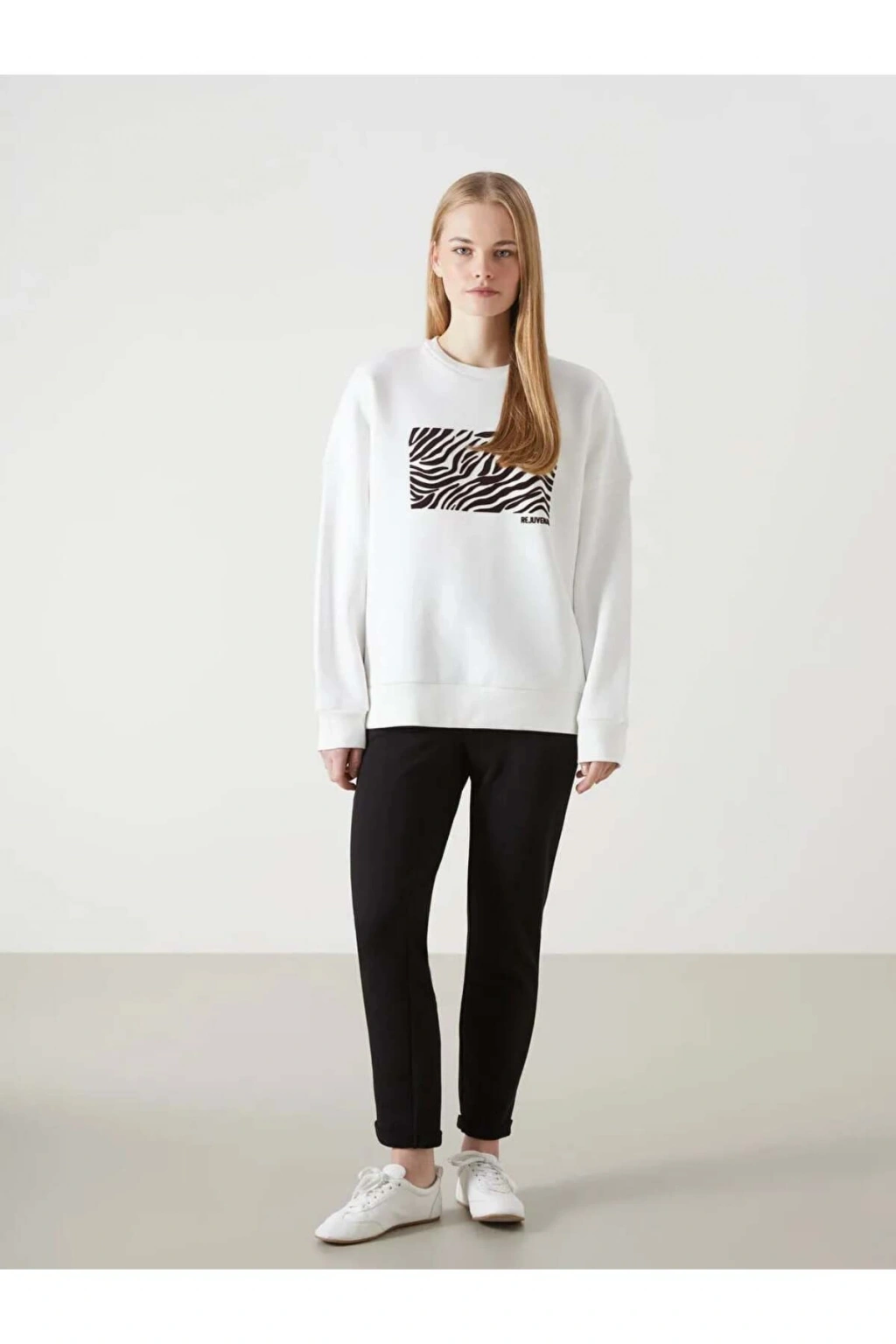 Bisiklet yaka baskılı sweatshirt, kaliteli 3 iplik kumaştan üretilmiştir. İçi yumuşak tüylüdür böylece konforlu bir giyim deneyimi sunar. Bilek ve alt kısmındaki ribana detayları sayesinde vücuda tam oturur.