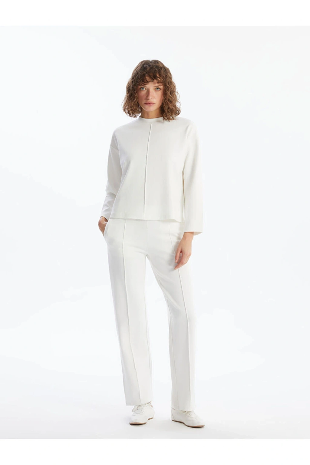 Bisiklet yaka düz uzun kollu oversize sweatshirt, interlok kumaşı ile sarkma ve çekme yapmaz. Oversize kesimi sayesinde hareket özgürlüğü sağlar.