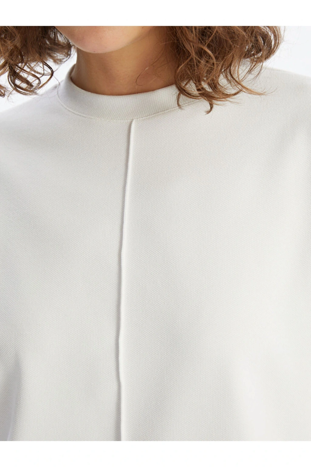LCW Vision Ekru Bisiklet Yaka Düz Oversize Kadın Sweatshirt
