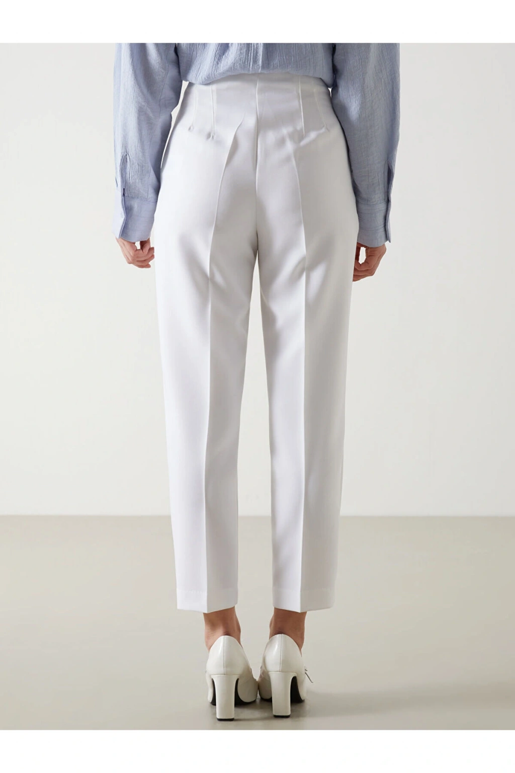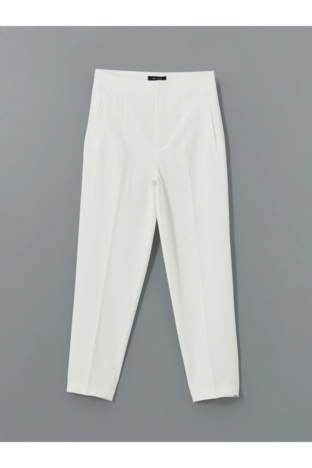 Yüksek bel, havuç kesim kadın pantolon, çift yüzlü kumaştan üretilmiştir. Daralan paçalıdır, önü pensli ve yan ceplidir.