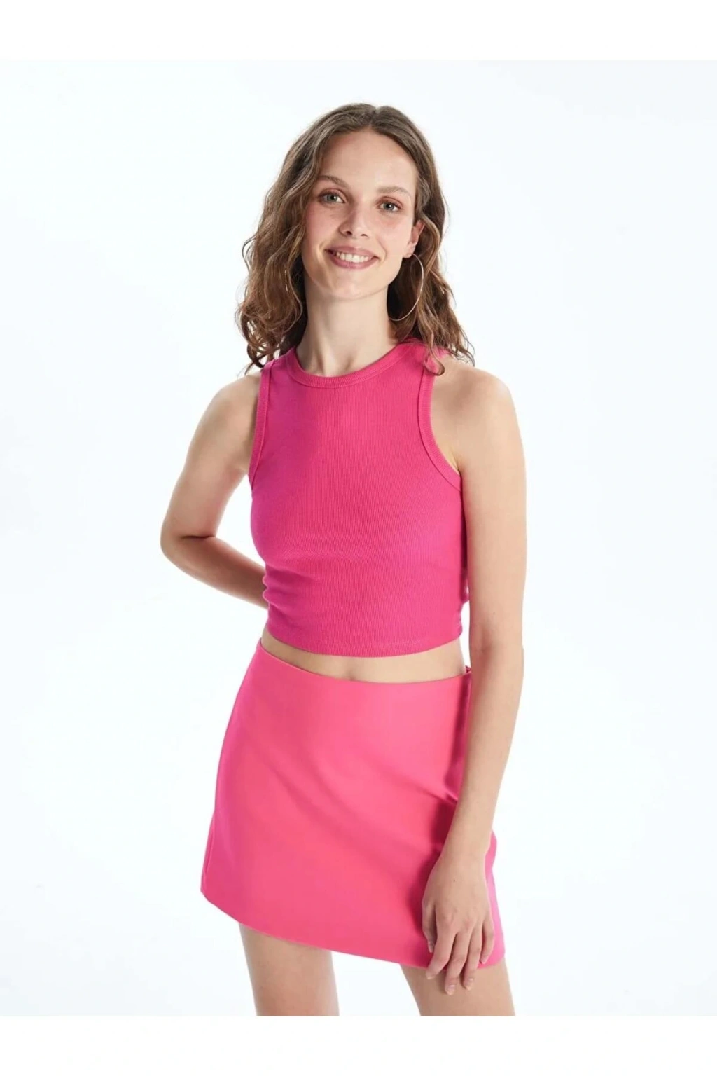 LCW Vision Fuşya Kadın Bisiklet Yaka Düz Crop