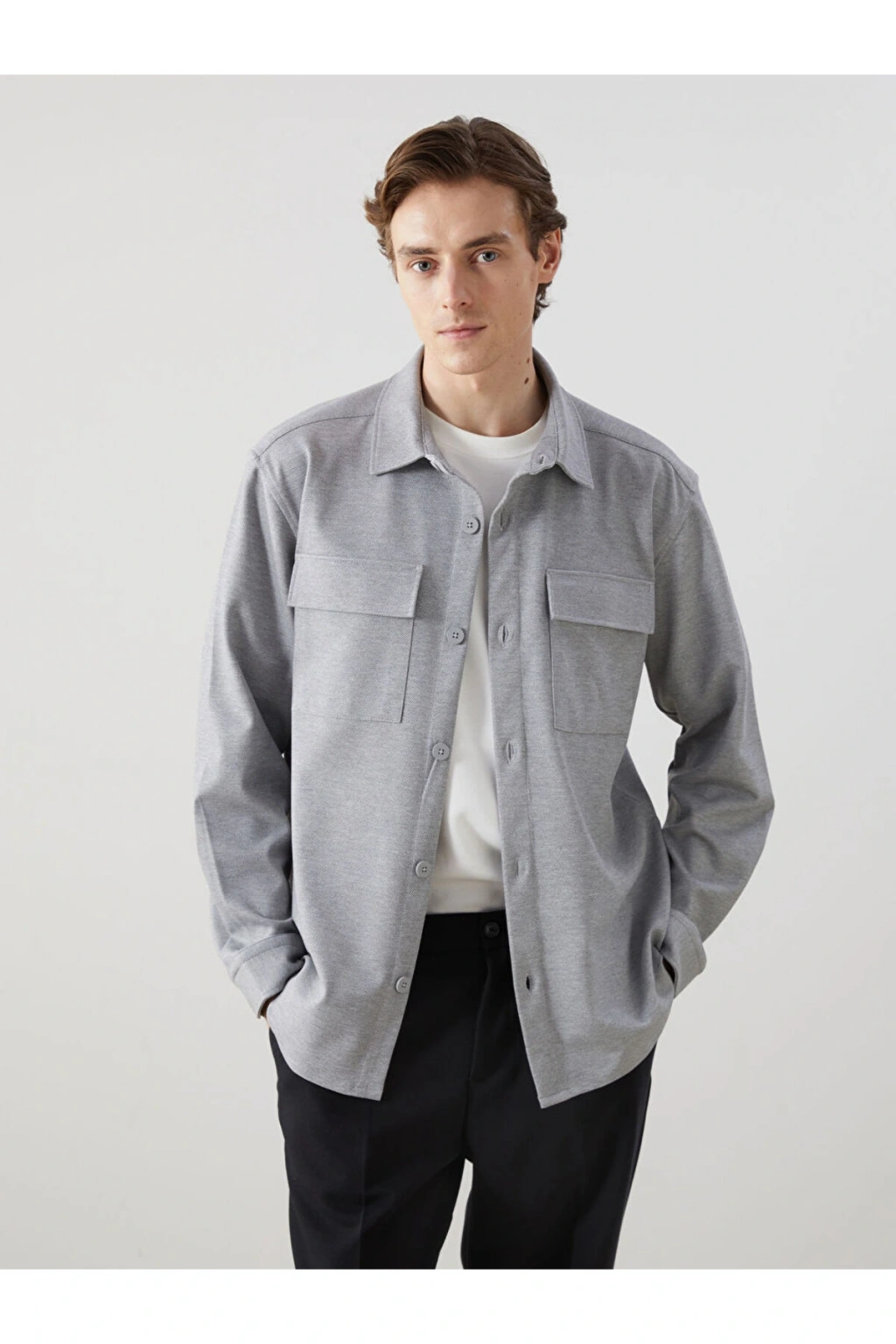 Gömlek ceket, fonksiyonel cep detaylarıyla hem kullanışlı hem de şık bir tasarım sunar.; Cep detayları sayesinde küçük eşyalarınızı rahatça taşımanıza olanak tanır.; Ürün Özellikleri: Satıcı: LC Waikiki Marka: LCW Vision Ürün Tipi: Gömlek Ceket Cinsiyet: Erkek Kalıp: Standart & Regular Kumaş: Çelikli İnterlok Desen: Düz Yaka: Gömlek Yaka Kalınlık: Orta Kalınlık Kol Boyu: Uzun Kollu