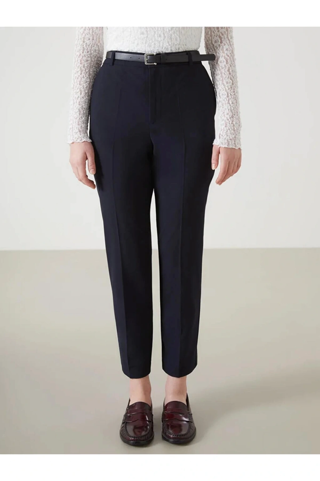 • Beli kemerli havuç kesim düz pantolonu, ofisten sokak modasına kadar her alanda rahatlık ve stil sunar. İki yandan cepli tasarımı sayesinde küçük eşyalarınızı taşıyabilirsiniz, kemer detayı ile belinizi zarifçe sarar.
