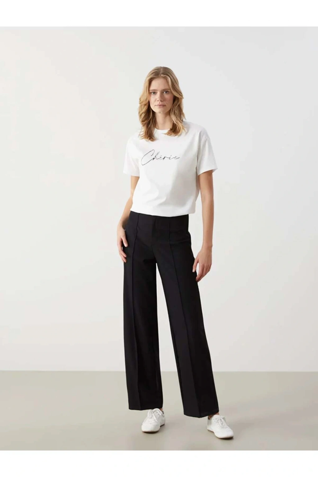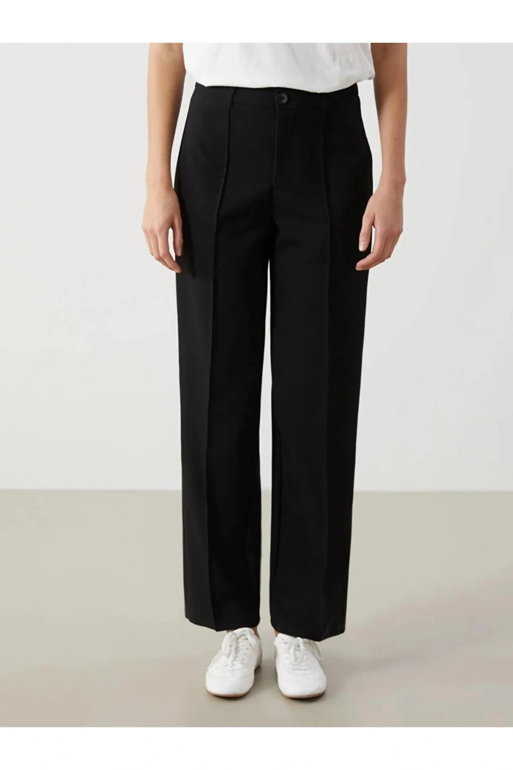 Dar kalıp düz pantolon, şık, modern ve dikkat çekici bir görünüm için ön kısmı dikiş detaylı olarak tasarlanmıştır.; Vücuda tam oturan kesimi ile zarif bir siluet oluşturur.