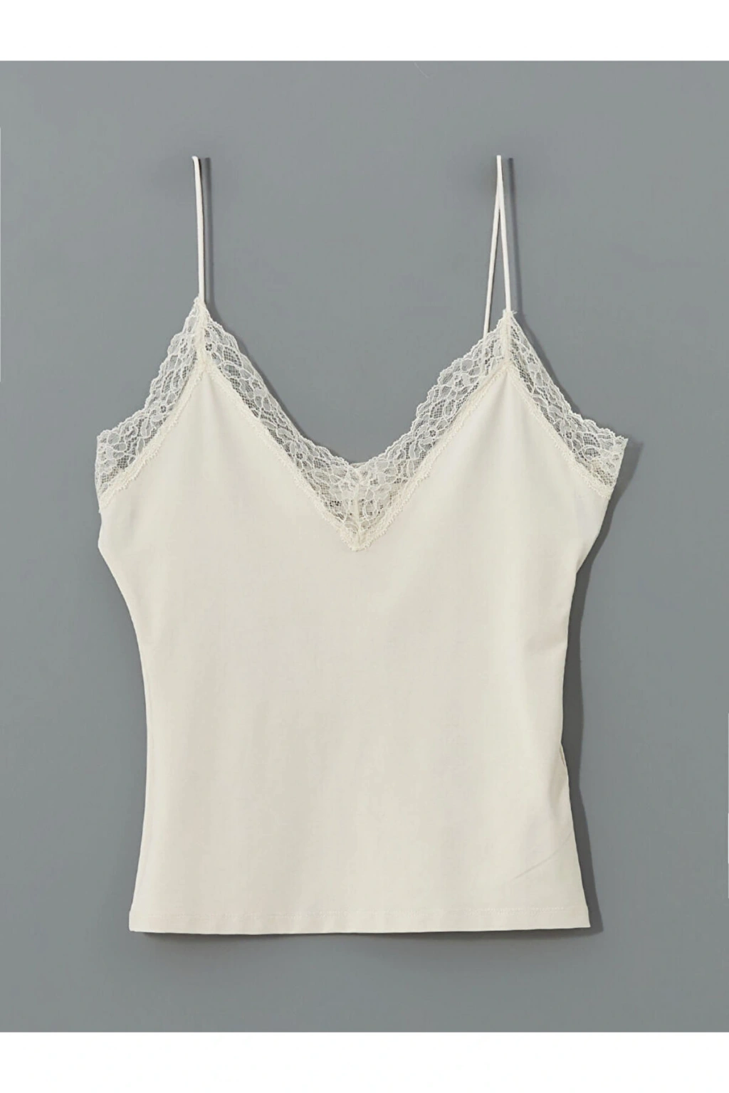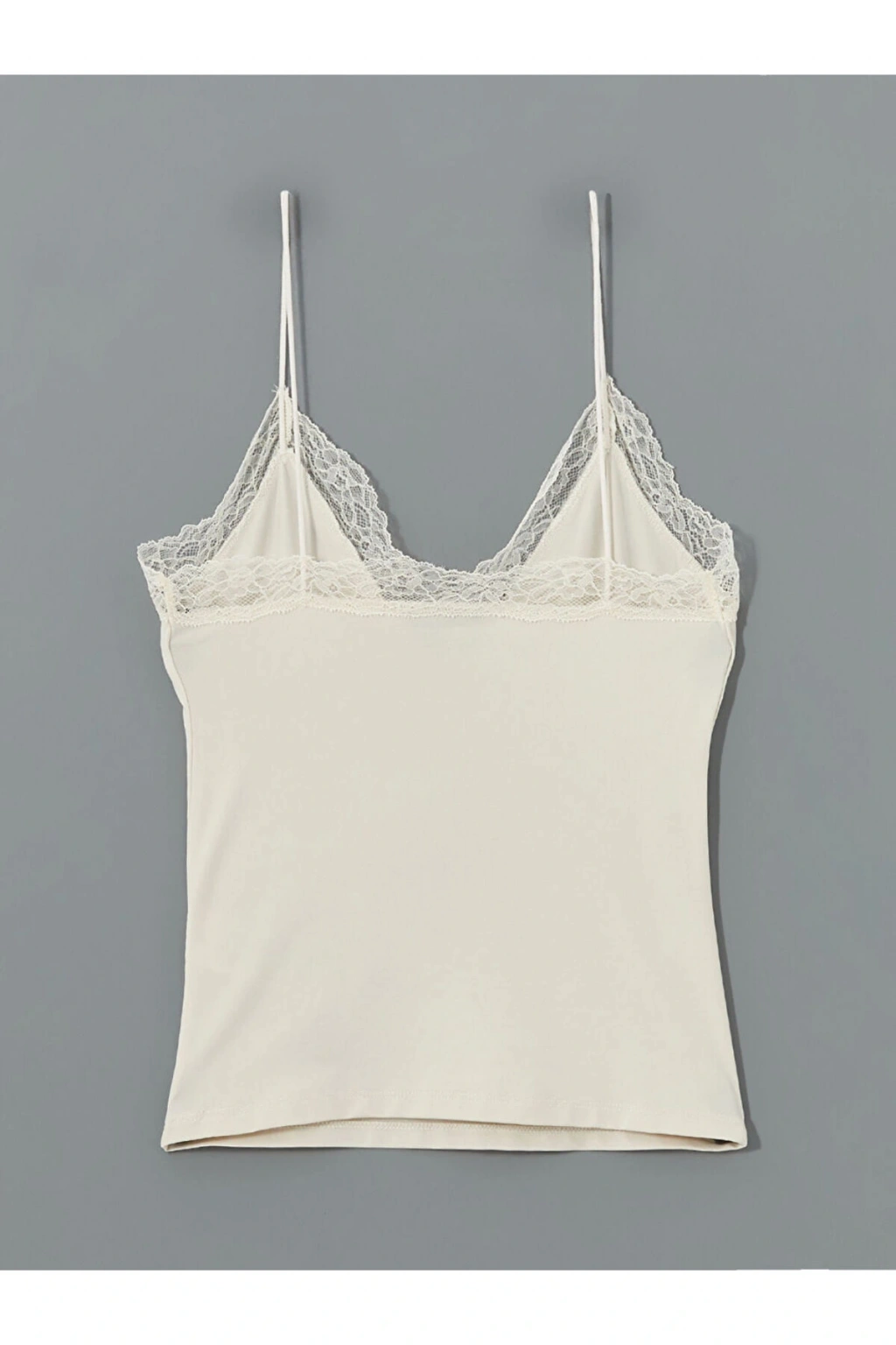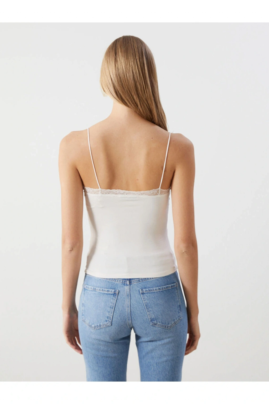 Ürün Açıklaması V yaka dantel detaylı crop kadın bluz, ayarlanabilir askıları sayesinde kişiye özel kullanım sağlar.; Yumuşak dokusu ise gün boyu rahatlık sunarak şık bir görünüm yaratır.; Ürün İçeriği ve Özellikleri Ürün İçeriği: Göğüs: 82 cm Bel: 61 cm Basen: 90 cm Boy: 181 cm Manken S beden ürün giyiyor.; Ürün İçeriği: Ürün Özellikleri: Satıcı: LC Waikiki Marka: LCW Vision Ürün Tipi: Bluz Cinsiyet: Kadın Kalıp: Süper Skinny & Ekstra Dar Desen: Düz Yaka: V Yaka Kalınlık: İnce Kol Boyu: Askılı Uzunluk: Crop