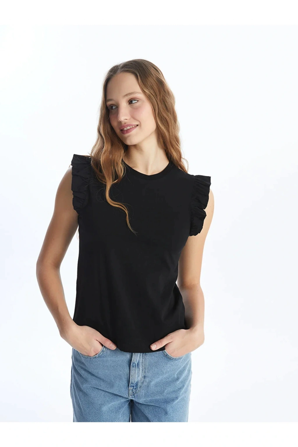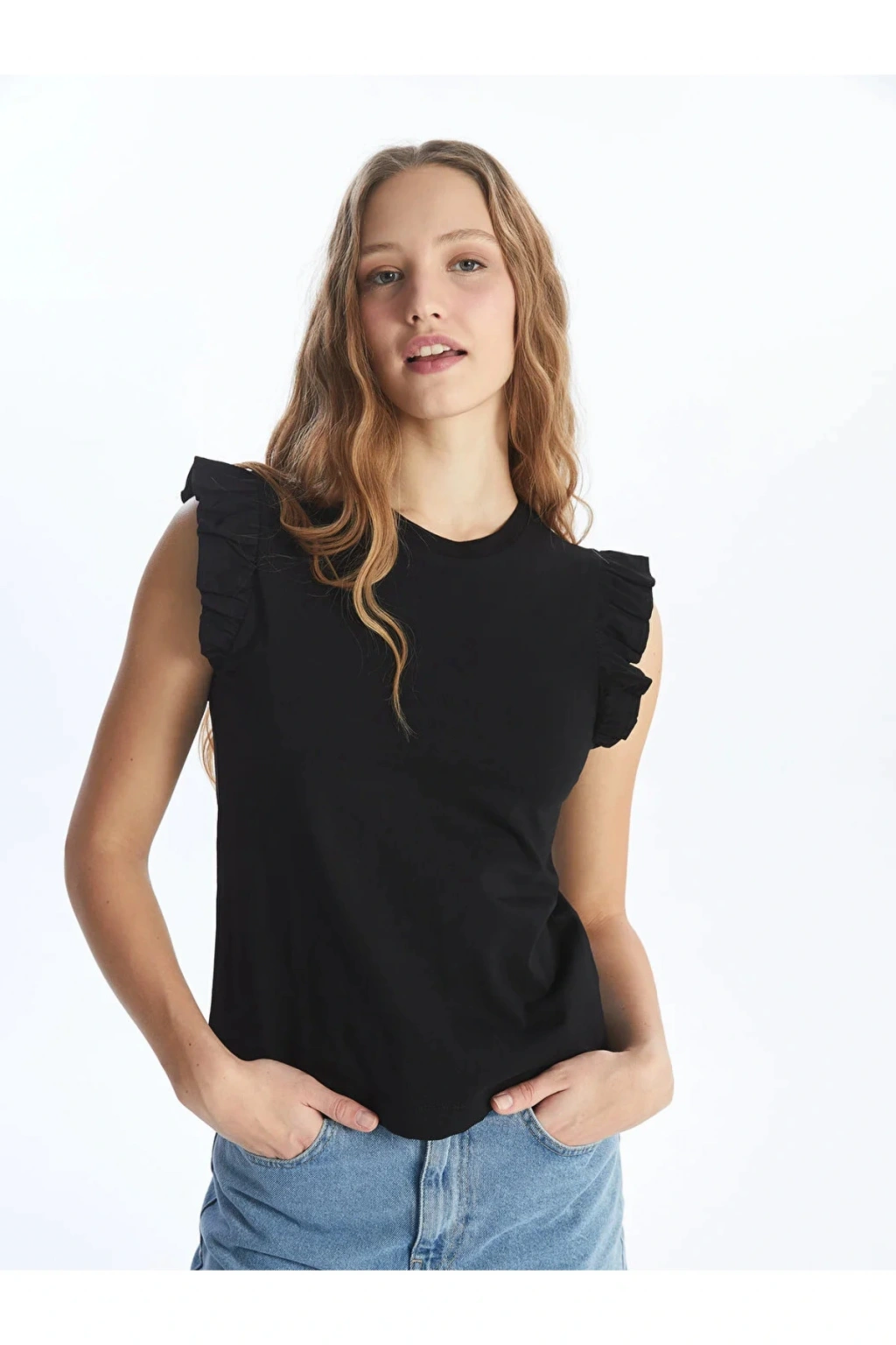 LCWAIKIKI Classic Siyah Bisiklet Yaka Kadın Tişört