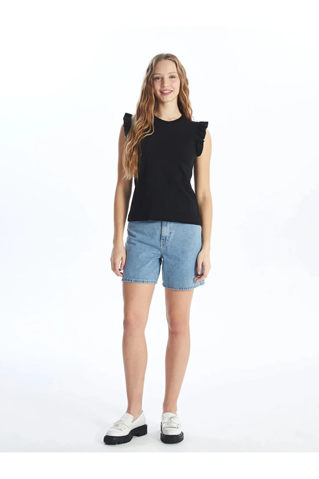 LCW Vision Bisiklet Yaka Düz Kısa Kollu Kadın Tişört