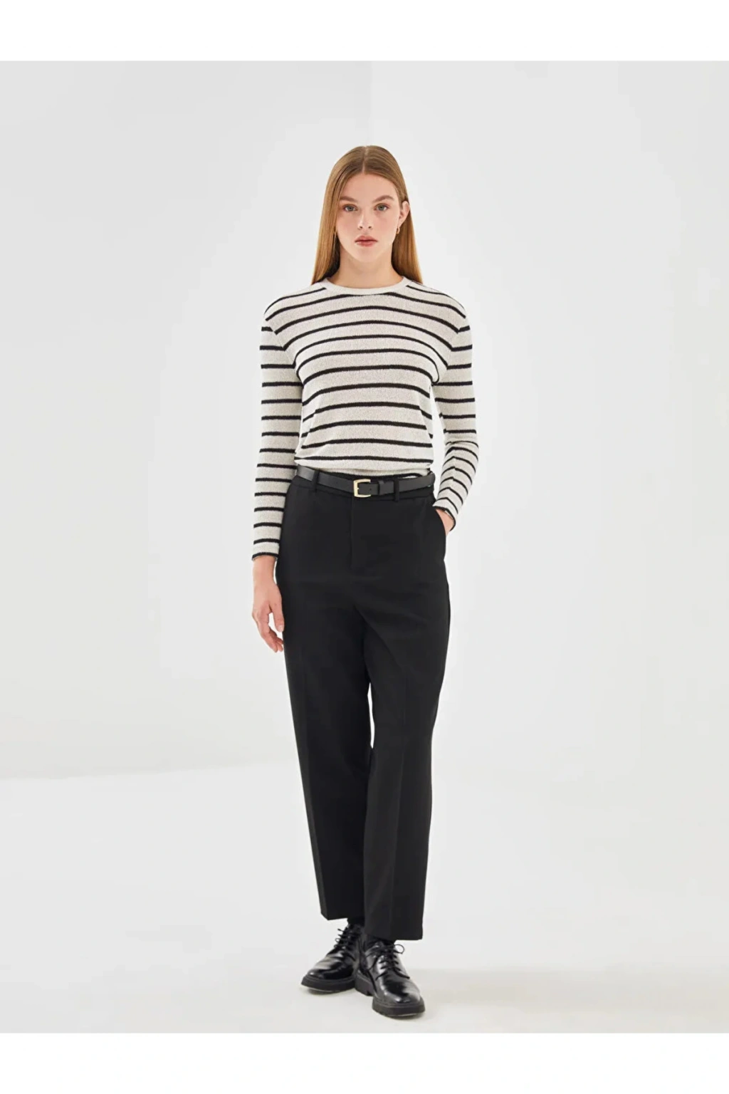 Her yaş grubuna hitap eden tasarımıyla, geniş bir kullanıcı yelpazesine sahip olan bu kazak, herkesin gardırobunda yerini almayı başarır; Standart boy kesimi sayesinde rahat bir kullanım sunar ve farklı vücut tiplerine uyum sağlar; Bisiklet yaka detayı ile modern ve şık bir görünüm kazandırırken, ekru çizgili deseniyle zamansız bir stil oluşturur; Dokuma kumaş yapısı, dayanıklılığı ve konforu bir arada sunarak uzun süreli kullanım imkanı sağlar; Düz kesimiyle sade ve şık bir duruş sergiler; günlük giyimden özel gün kombinlerine kadar geniş kullanım alanları sunar;